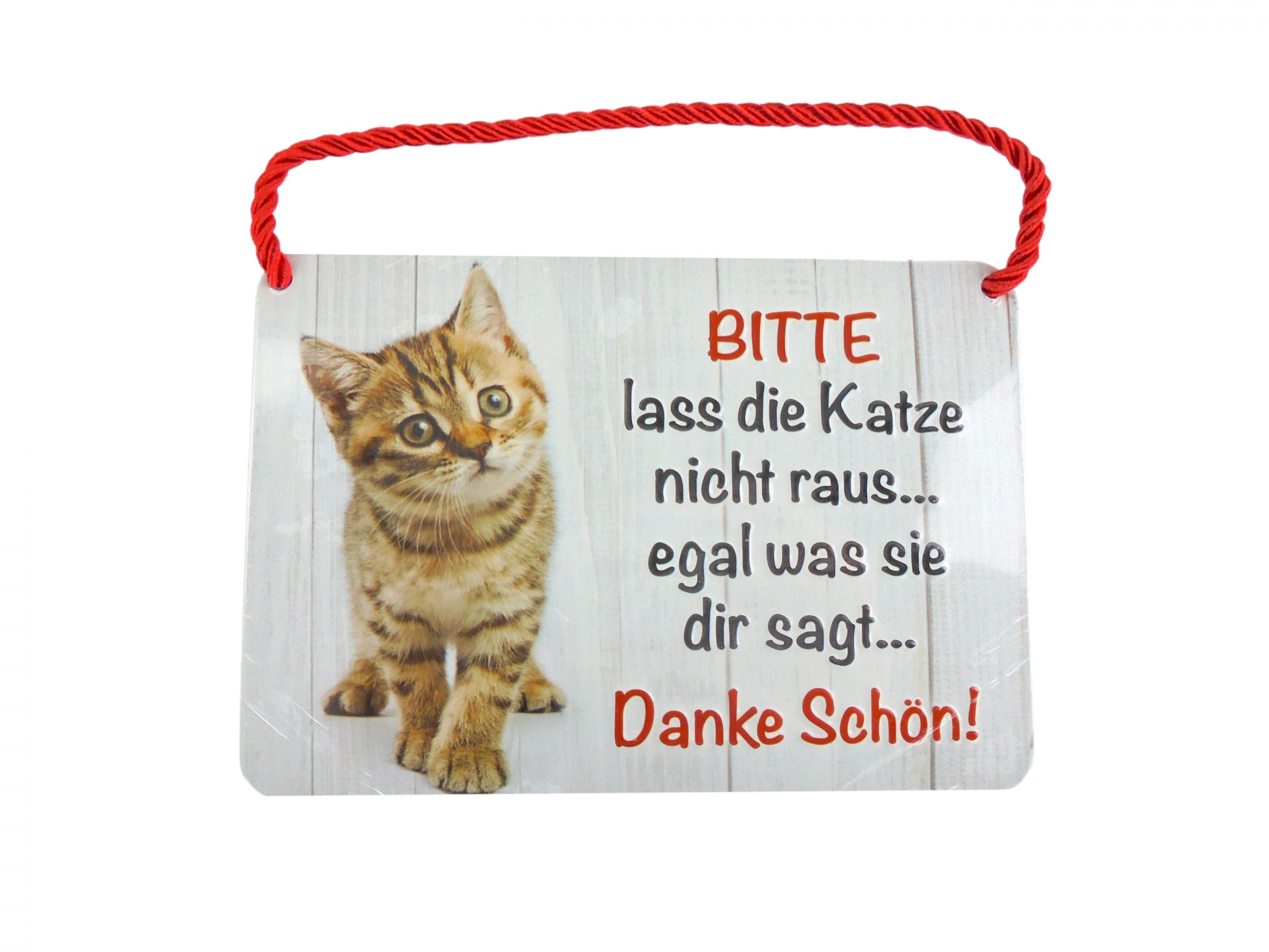 Das Kulthänger Blechschild “Katze raus” ist ein humorvolles und praktisches Accessoire für alle Katzenfreunde. Mit seinem originellen Spruch „BITTE lass die Katze nicht raus … egal was sie dir sagt … Danke schön!“ sorgt es für ein Schmunzeln und erfüllt gleichzeitig einen nützlichen Zweck. Das Schild ist Teil der beliebten Kulthänger-Reihe der Blechwaren Fabrik und überzeugt durch Qualität und Vielseitigkeit.