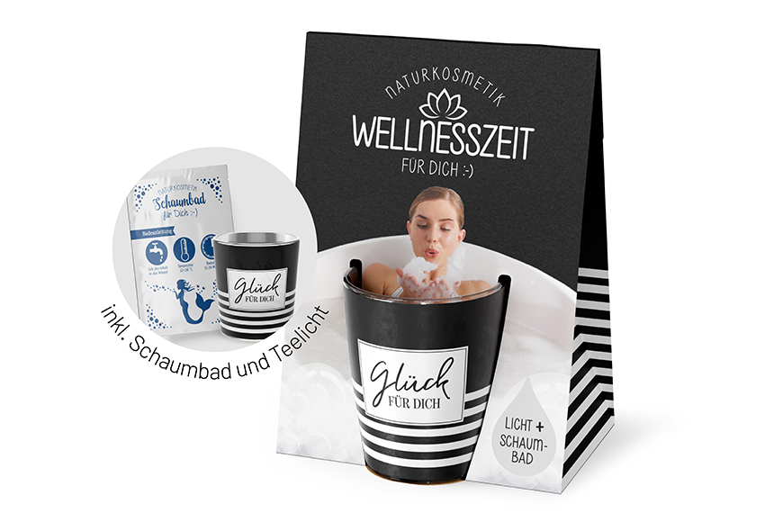 Licht & Schaumbad Schwarz/Weiß “Glück für Dich” – für wohltuende Entspannungsmomente