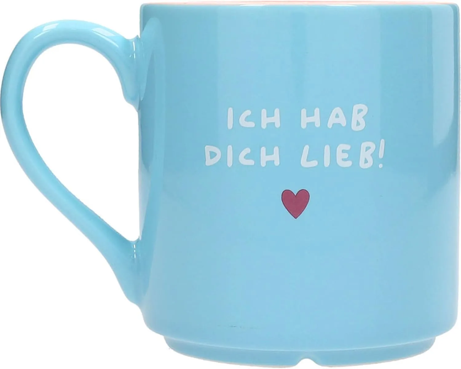 Gefertigt aus hochwertigem New Bone China Porzellan überzeugt dieser Becher nicht nur mit seiner Qualität, sondern auch mit seinem warmherzigen Design. Die Glasur in zwei kräftigen Farbtönen – außen Himmelblau, innen Rosa – sorgt für eine fröhliche, moderne Optik. Auf der Außenseite schmückt ein kleines pinkes Herzchen zusammen mit dem liebevollen Schriftzug „Ich hab dich lieb!“ die Tasse. Und auch im Inneren verbirgt sich ein weiteres Herz – eine kleine, süße Überraschung für alle, die bis zum letzten Schluck genießen.