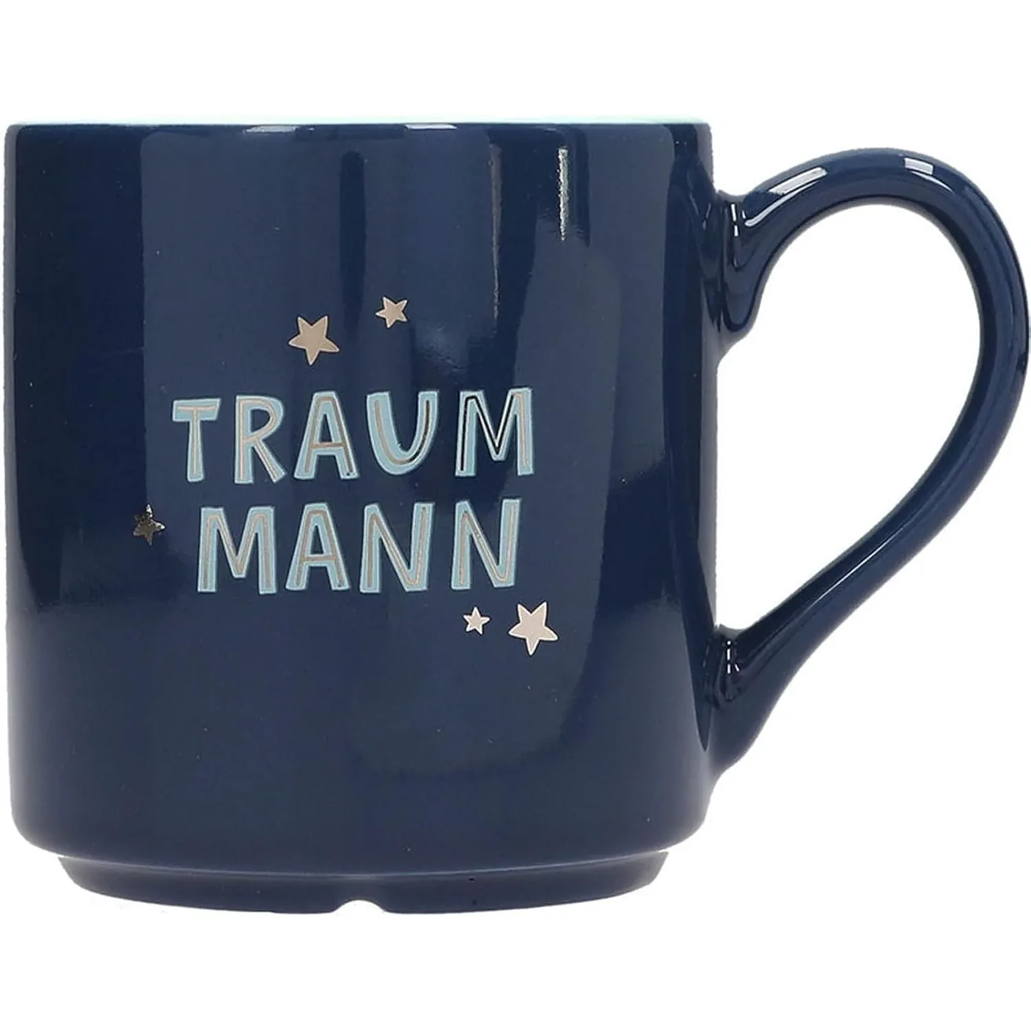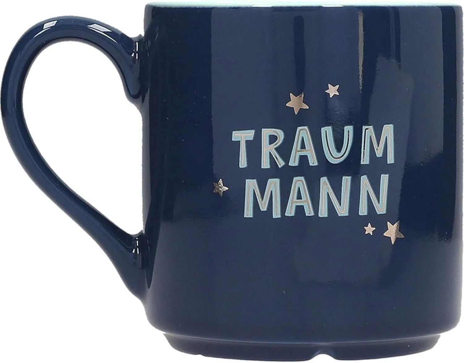 Was diesen Becher so besonders macht? Die geschmackvolle Zweifarbglasur in sattem Dunkelblau außen und frischem Mintgrün innen verleiht ihm eine moderne, maskuline Ausstrahlung. Doch das echte Highlight ist der elegante Schriftzug „Traum-Mann“, der mit feinen silbernen Details und kleinen Sternchen verziert ist – dezent glänzend, aber voller Aussagekraft. Er sagt das, was oft viel zu selten ausgesprochen wird: Du bist etwas ganz Besonderes.