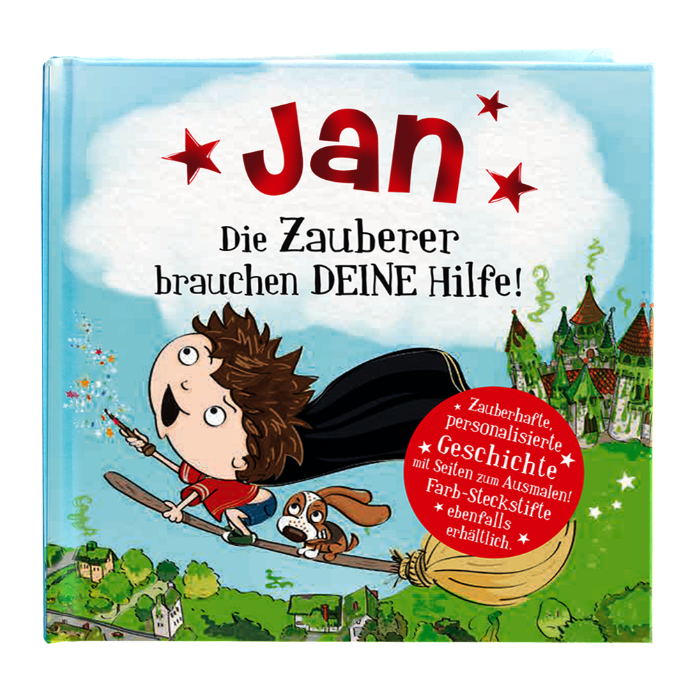 „Magisches Märchenbuch – Jan“ lässt Ihren Jungen die Hauptrolle in einer spannenden, magischen Welt übernehmen. In der Geschichte „Die Zauberer brauchen Deine Hilfe“ wird er zum mutigen Helfer der Zauberer, der eine magische Aufgabe erfüllt. Er tritt ein in eine Welt voller Magie, Rätsel und Abenteuer, in der er nicht nur Teil der Geschichte wird, sondern diese aktiv mitgestalten kann. So wird er zum Helden seines eigenen Abenteuers und kann die Magie selbst in die Hand nehmen.