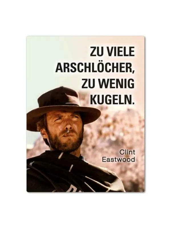 Außerdem bringen Magnete nicht nur Ordnung in den Alltag, sondern schenken auch ein Stück Persönlichkeit. Sie erinnern, motivieren oder bringen einen zum Lachen – so wie dieser hier. Für echte Kerle, Cineasten und alle, die Clint Eastwoods markante Art zu schätzen wissen.