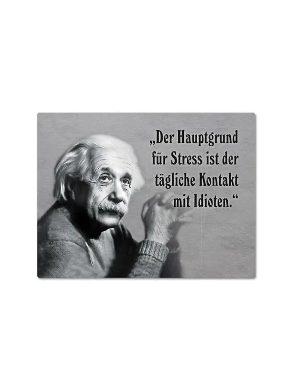 Manche Aussagen bringen es einfach auf den Punkt – so wie der Magnet “Kontakt mit Idioten”. Mit einem ikonischen Albert-Einstein-Porträt in Schwarz-Weiß und dem augenzwinkernden Spruch „Der Hauptgrund für Stress ist der tägliche Kontakt mit Idioten“ trifft dieser Magnet den Nerv der Zeit. Er ist nicht nur ein humorvolles Statement für den Alltag, sondern auch ein hochwertiges Wohnaccessoire, das mit Charakter und Charme überzeugt.