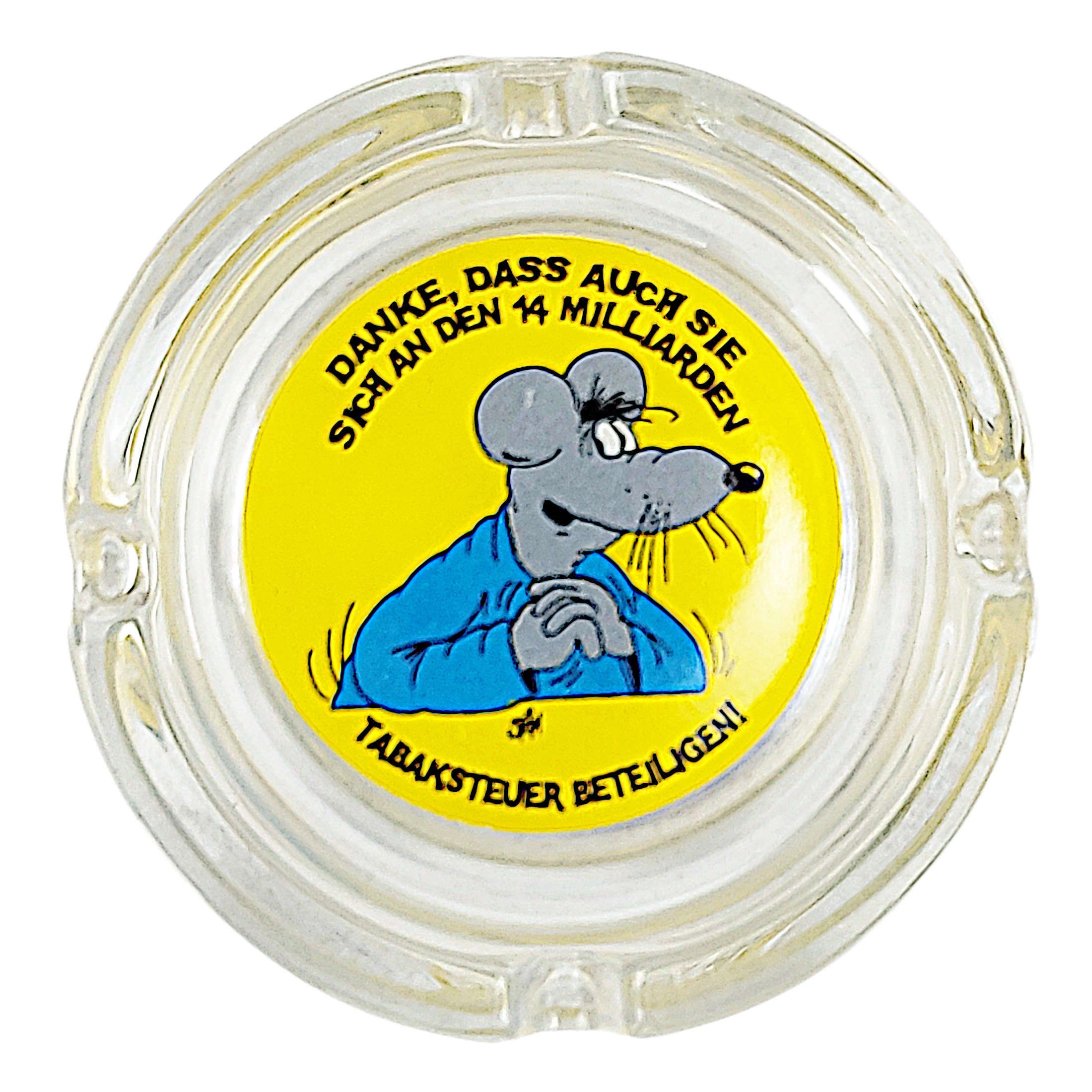 Das Design des Mini Aschenbechers “14 Milliarden” ist typisch für den bekannten deutschen Cartoonisten Uli Stein. Die Maus, die auf dem Aschenbecher abgebildet ist, hat die Hände zusammengefaltet und bedankt sich mit dem Spruch “Danke, dass auch Sie sich an den 14 Milliarden Tabaksteuer beteiligen”. Dieses humorvolle Motiv bringt sicherlich ein Schmunzeln auf die Lippen und sorgt für eine entspannte Atmosphäre.