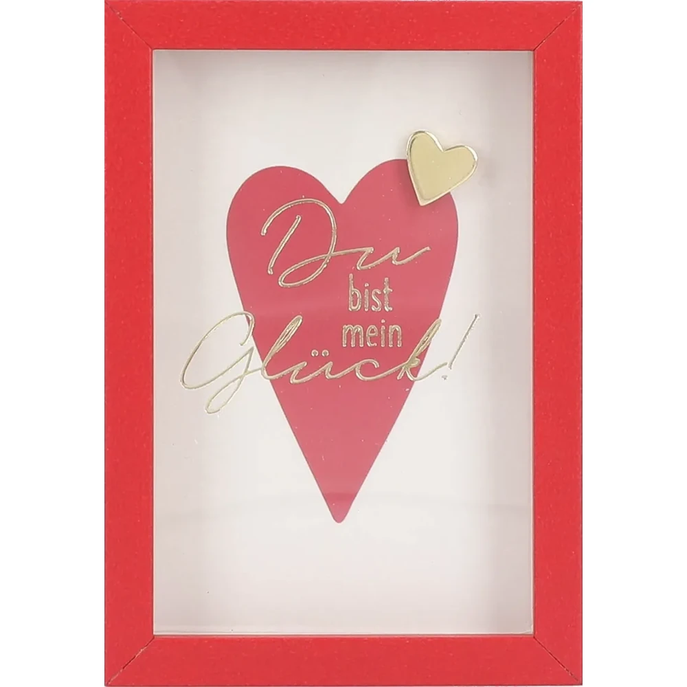 Entdecken Sie den Mini-Bilderrahmen mit Schriftzug “Du bist mein Glück”. Ein zauberhaftes Dekorationsstück, das Ihre Liebesbotschaften auf charmante Weise präsentiert. Mit einer Größe von ca. 8,4 x 5,8 x 1,4 cm cm ist dieser kleine Bilderrahmen ein Blickfang und auch ein wunderbares Geschenk für Ihren Partner, Ihre Partnerin oder für jemanden, dem Sie Ihre Wertschätzung zeigen möchten.