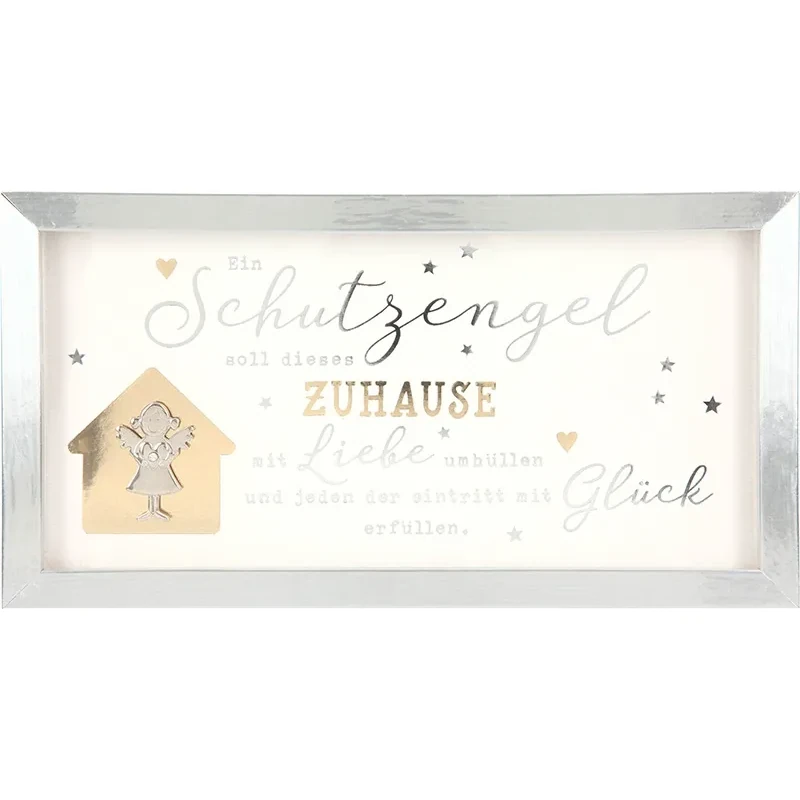Mini-Bilderrahmen mit Schriftzug “Ein Schutzengel Zuhause” – Ein Schutzengel soll dieses Zuhause mit Liebe umhüllen und jeden der eintritt, mit Glück erfüllen