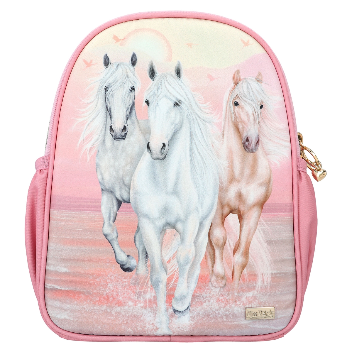 Der Miss Melody Rucksack SUNDOWN ist das ultimative Accessoire für alle Pferdeliebhaberinnen und stilbewussten Mädchen. Mit seinem traumhaften XL-Pferde-Motiv, sanftem Rosa und goldenem Glitzer wird dieser Rucksack im Handumdrehen zum Blickfang in jeder Schule, auf Ausflügen oder beim Treffen mit Freunden. Das geräumige Hauptfach des Rucksacks bietet genügend Platz für Schulbücher, Hefte und sogar einen Laptop, so dass er nicht nur hübsch aussieht, sondern auch äußerst praktisch ist. In dem extra Innenfach können wertvolle Kleinigkeiten sicher verstaut werden, während die Seitentaschen perfekt für Wasserflaschen oder Snacks geeignet sind.