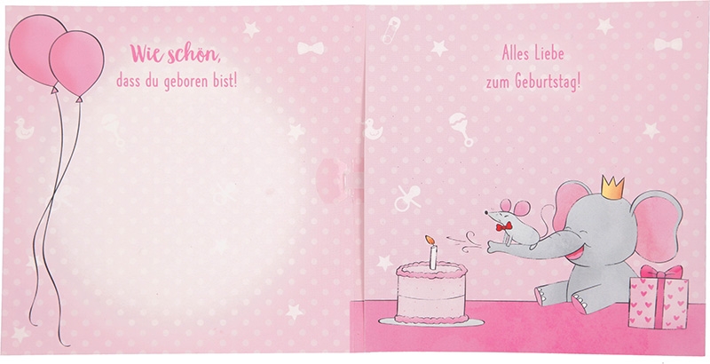 Musikkarte 1. Geburtstag / rosa