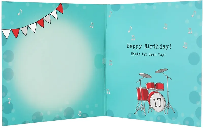 Feiern Sie jeden Geburtstag mit einer ganz besonderen Karte! Die liebevoll gestalteten Zahlenkarten mit Musik sind mehr als nur eine Glückwunschkarte – sie sind eine unvergessliche Erinnerung an einen besonderen Tag. Die Musikkarte 17. Geburtstag in türkis ist perfekt, um jedem Geburtstagskind ein Lächeln ins Gesicht zu zaubern.