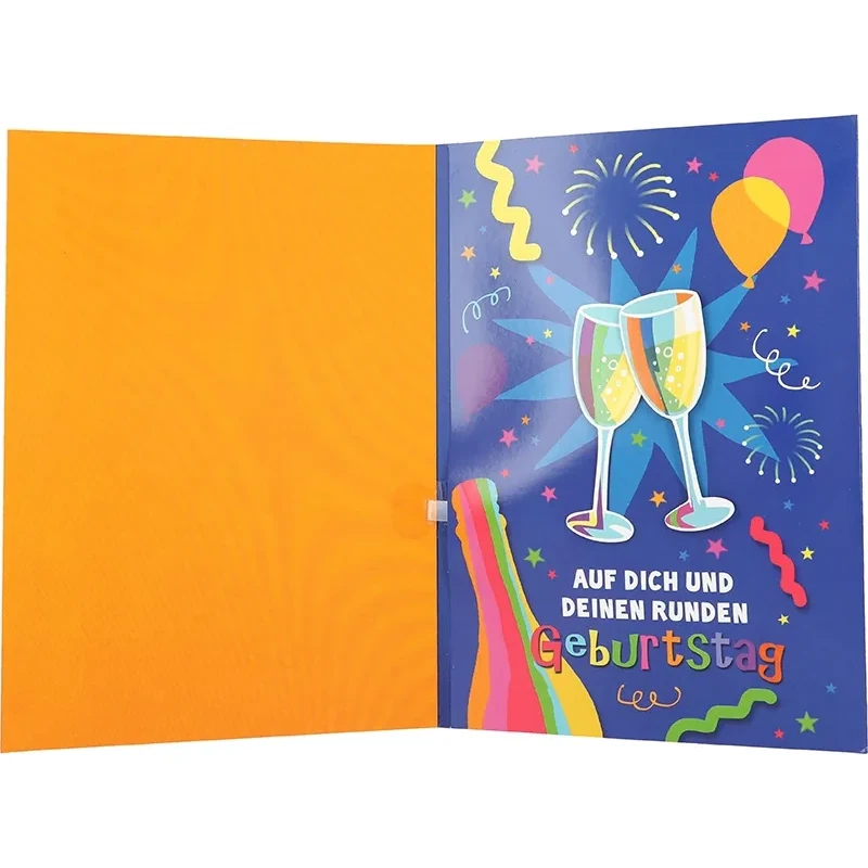 Während die Musik spielt, lesen Sie die herzliche Botschaft: „Auf dich und deinen runden Geburtstag“. So verbinden sich Bild, Ton und Bewegung zu einem stimmungsvollen Gesamtmoment. Diese Musikkarte eignet sich wunderbar als kleines Geschenk. Doch auch als Ergänzung zu einem Präsent oder als Überraschung per Post macht sie Eindruck. Ein passender Umschlag ist natürlich dabei.