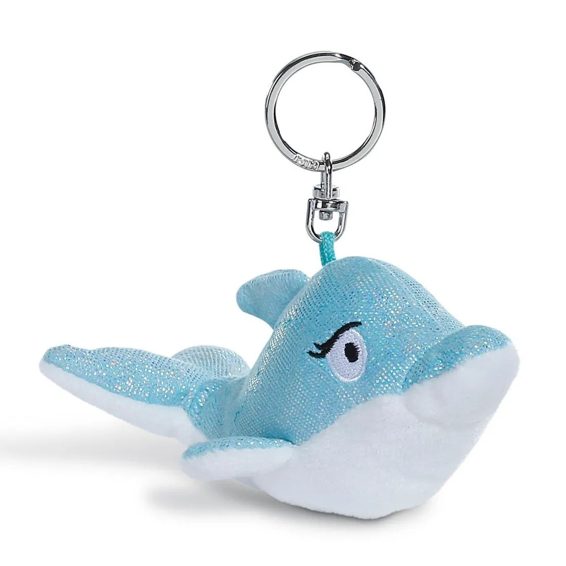 Der Schlüsselanhänger – Delfin “Del-Finchen” gehört zu NICIs bunter Plüschwelt. Am liebsten schaukelt der plüschige Bean-Bag Anhänger dort, wo er einen guten Überblick hat und selbst bestaunt werden kann – an Taschen oder Rucksäcken zum Beispiel. Aber natürlich nimmt er auch den Job als Schlüsselanhänger ernst! Besonderer Hingucker: der Rücken des Delfins besteht aus kuschelweichem Glitzerstoff.