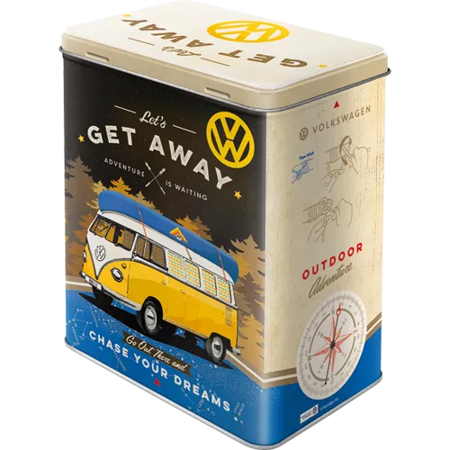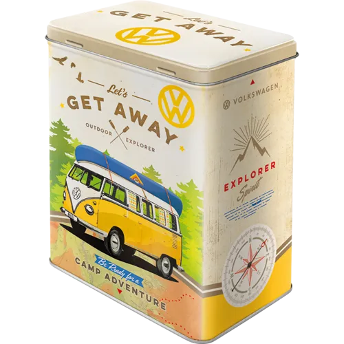 Diese Blechdose ist nicht nur ein praktisches Utensil für den täglichen Gebrauch. Sondern auch ein ideales Geschenk für VW-Fans, Camper und alle, die das “Get Away”-Gefühl lieben.