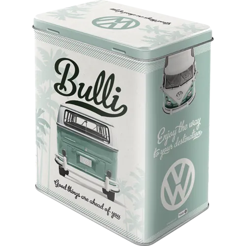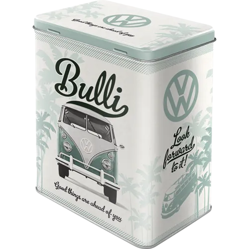 Die Nostalgic-Art VW Bulli Blechdose “Good Things” ist nicht nur eine praktische Aufbewahrungshilfe. Sondern auch ein Muss für jeden Sammler und ein stilvolles Dekorationsobjekt, das die Faszination des berühmtesten Busses der Welt in Ihr Zuhause bringt.