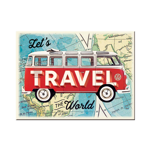 Kult auf Reisen: Nostalgic-Art Blechmagnet – VW Bulli “Travel the World”