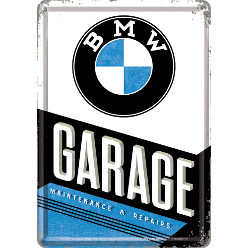 Mit der Nostalgic-Art Blechpostkarte „BMW Garage“ verbinden Sie Design, Nostalgie und Funktionalität in einem stilvollen Sammlerstück, das die Leidenschaft für BMW auf charmante Weise zum Ausdruck bringt.