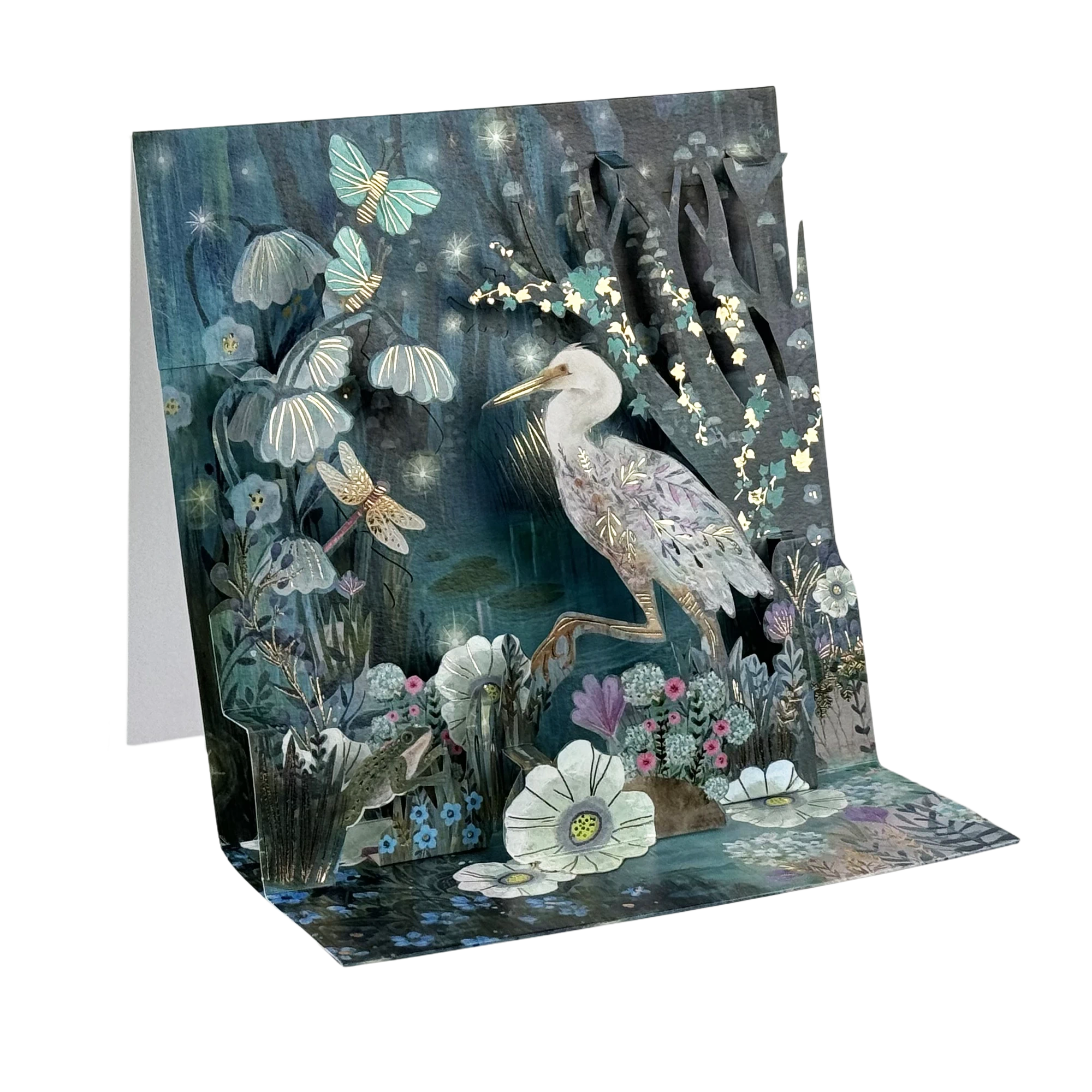 Künstlerische Pop-up-Grußkarten “Reiher imTeich” – Einzigartige Miniaturkunstwerke für jeden Anlass