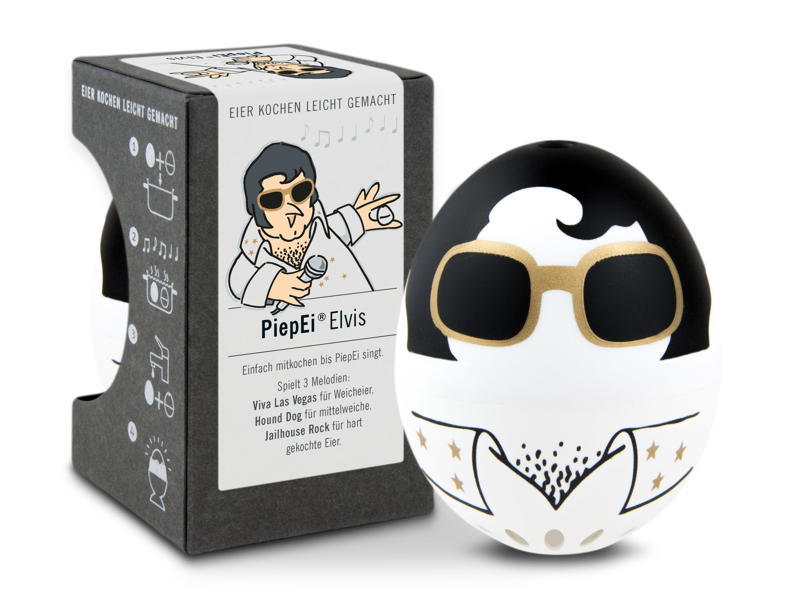 Ladies and Gentlemen, der König ist zurück – und er bringt perfekt gekochte Eier mit! Die Eieruhr zum Mitkochen – Elvis PiepEi sorgt dafür, dass der Morgen nicht nur gut beginnt, sondern auch musikalisch. Schluss mit halbgaren Kompromissen und matschigen Eiern. Jetzt regiert Elvis im Kochtopf – mit Hüftschwung, Charme und Präzision.
