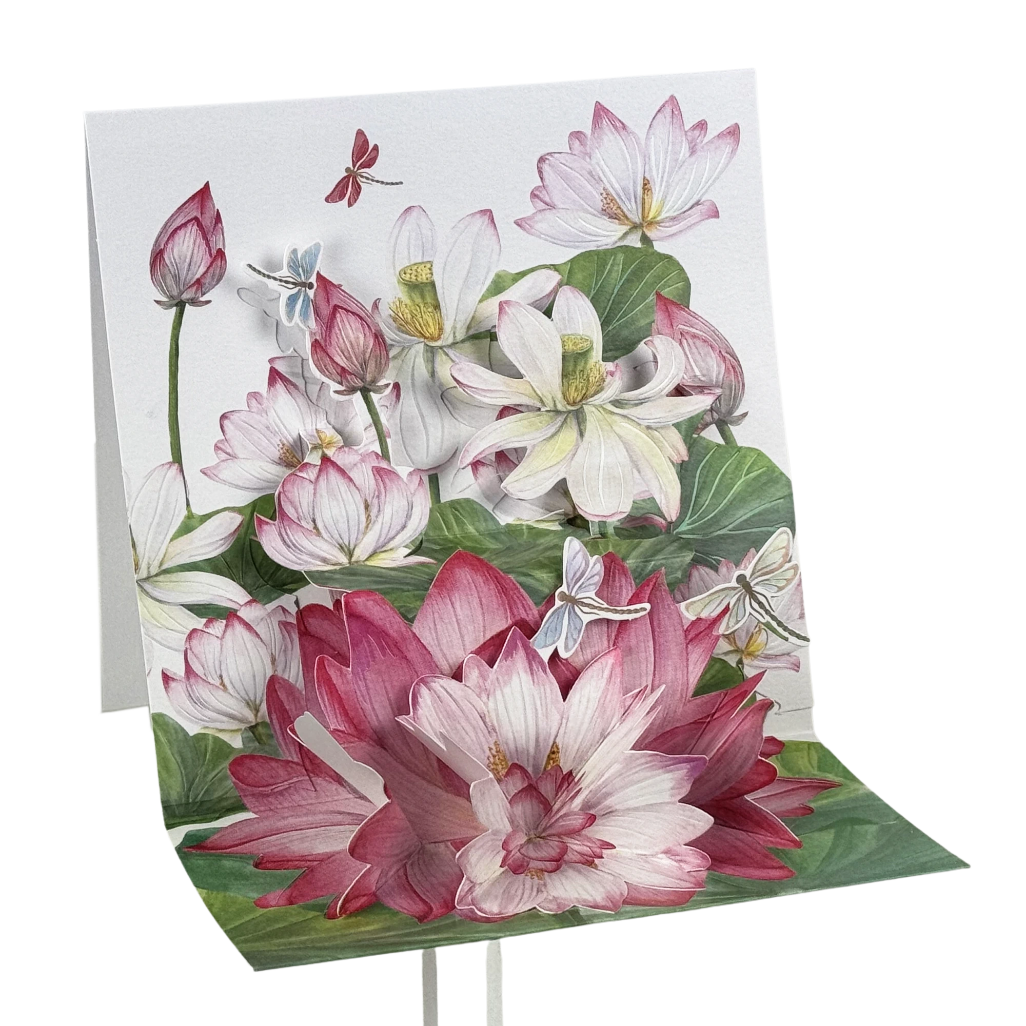 Künstlerische Pop-Up Karte „Seerosenteich“ – Einzigartige Miniaturkunstwerke für jeden Anlass