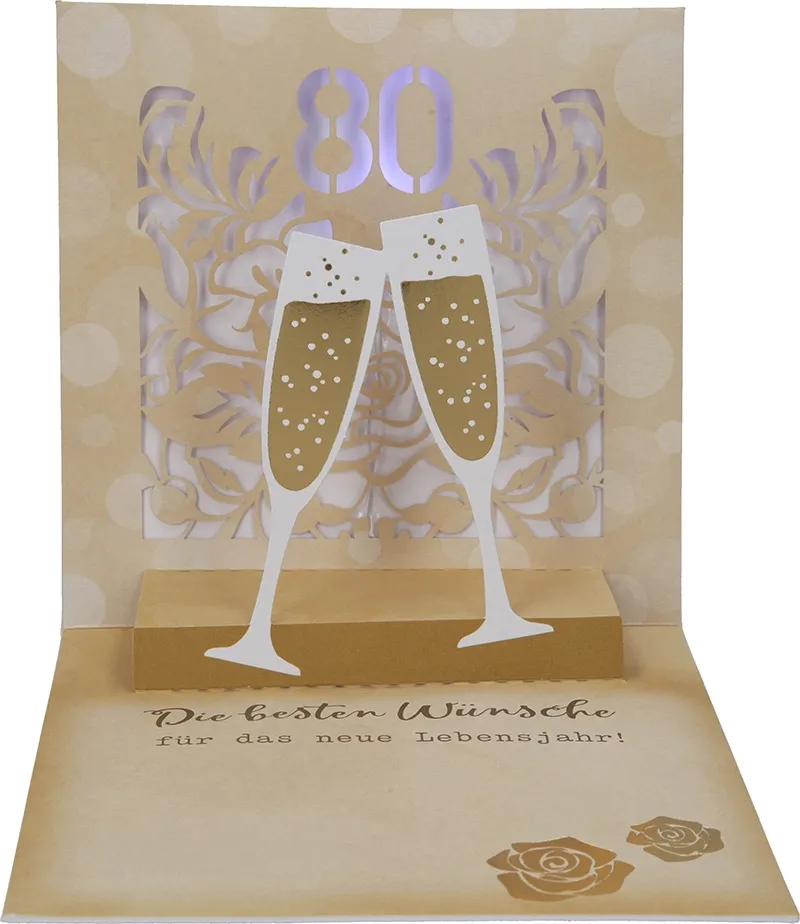 Ob als kleine Aufmerksamkeit oder als Ergänzung zu einem Geschenk – diese Karte zeigt: Sie gratulieren von Herzen. Mit der Pop-up-Musikkarte „Besonderer Geburtstag 80“ verschenken Sie Musik, Licht, Emotion und bleibende Erinnerungen.