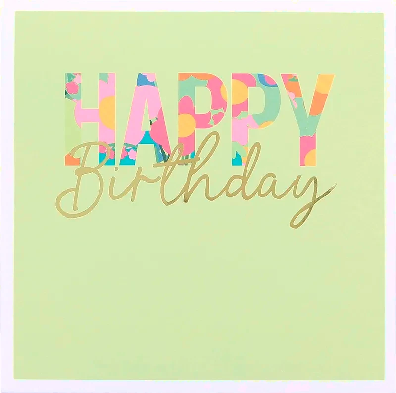 Bereits die Vorderseite begeistert: Ein zart hellgrüner Hintergrund trifft auf einen markanten „Happy Birthday“-Schriftzug. „Happy“ ist kunstvoll mit floralen Mustern gestaltet, „Birthday“ leuchtet in goldener Handschrift. Doch das wahre Highlight offenbart sich beim Öffnen.