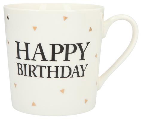 Dieser stylische Porzellanbecher mit dem Schriftzug “Happy Birthday” (schwarze Schrift) macht das Genießen des Lieblingsgetränks zu einem Glamour-Event! Ob heißer Tee, kühle Limo oder Wasser: Aus diesem herrlichen Becher schmeckt alles viel besser!