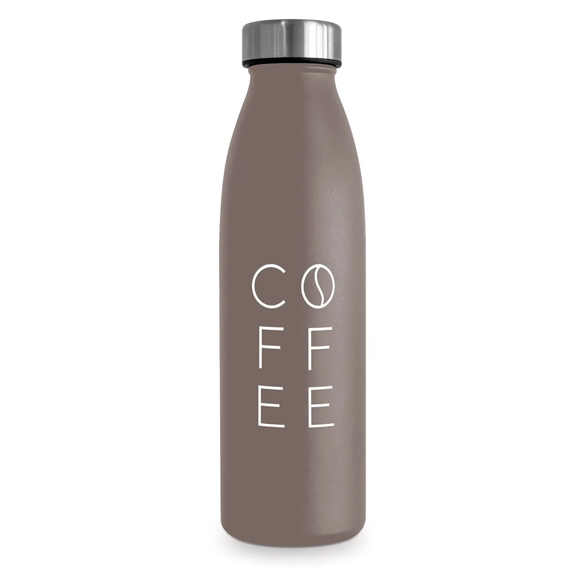 Das stilvolle Design der Flasche überzeugt nicht nur durch seine Funktionalität, sondern auch durch die besondere Optik. Der warme, kaffeebraune Hintergrund bringt das Thema „Coffee“ perfekt zur Geltung und unterstreicht das moderne und ansprechende Design. Besonders ins Auge fällt das „O“ im Schriftzug, das als eine kunstvoll gestaltete Kaffeebohne gestaltet ist – eine kleine, aber feine Hommage an die Liebe zum Kaffee.
