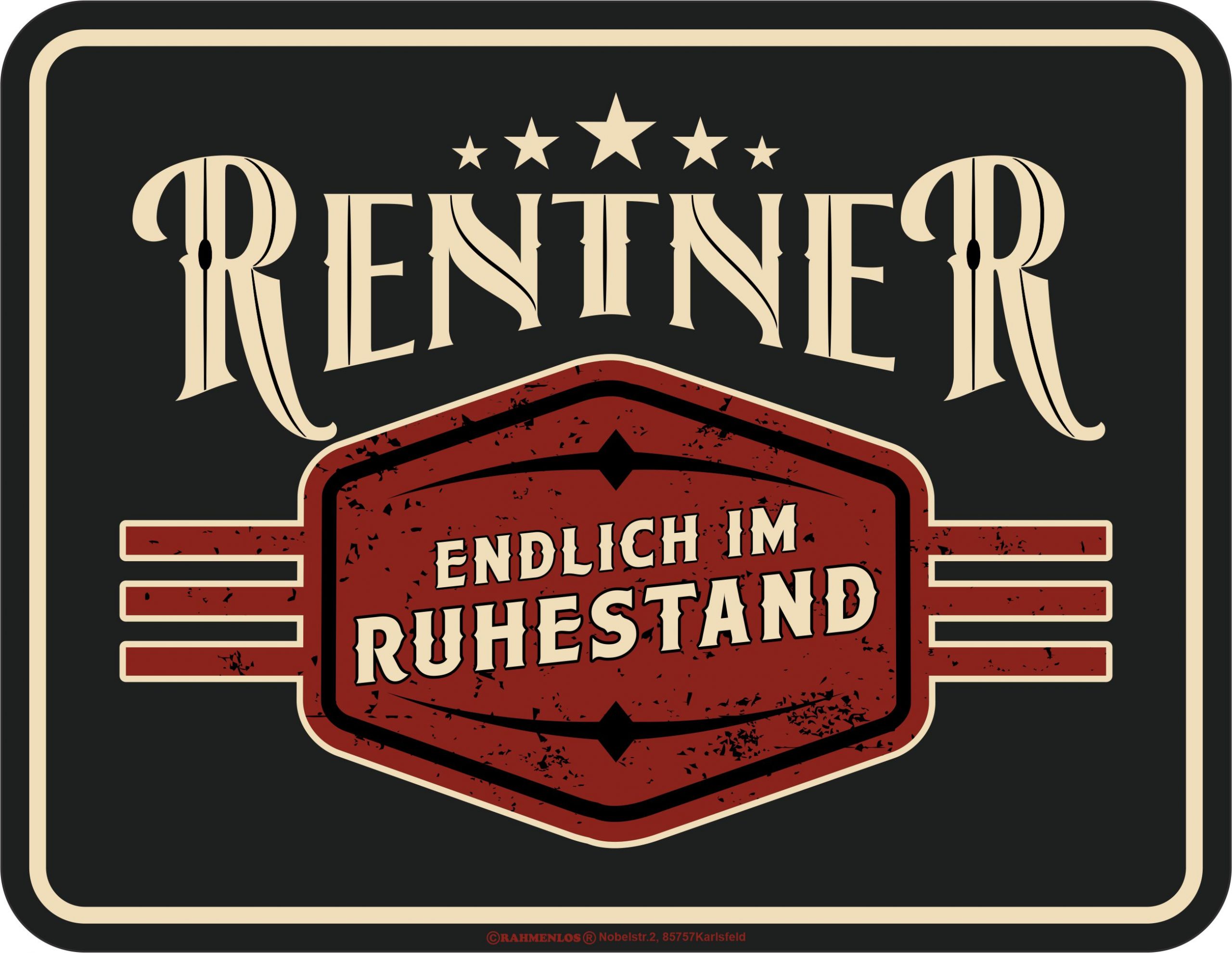 Original RAHMENLOS® Blechschild “Rentner” – Der perfekte Hingucker für den Ruhestand