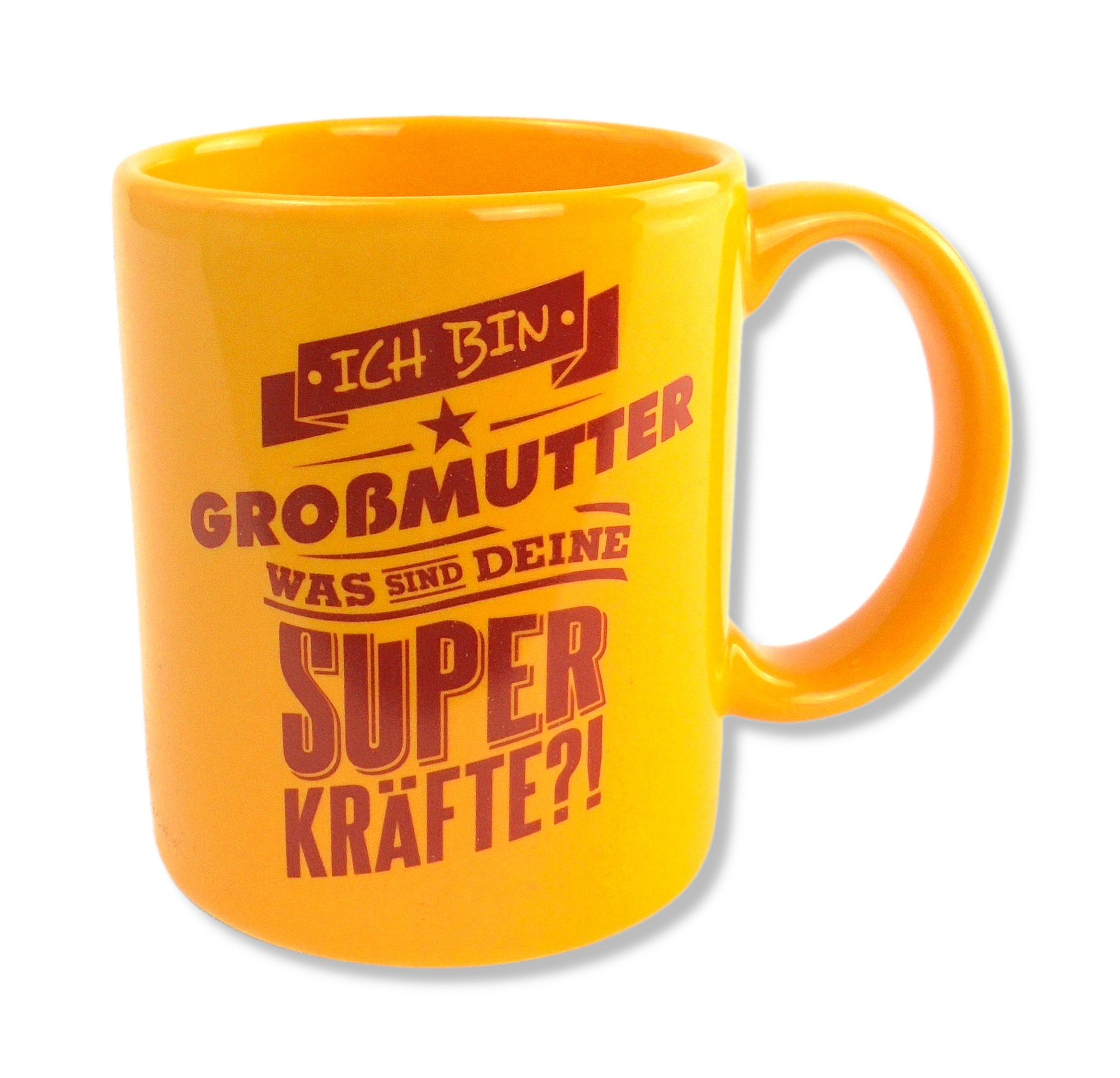 Die RAHMENLOS® Motiv Tasse “Ich bin Großmutter” ist das ideale Geschenk, um deiner Großmutter zu zeigen, wie sehr sie geschätzt wird. Dieser stilvolle, gelbe Kaffeebecher trägt den humorvollen Schriftzug: „Ich bin Großmutter – Was sind deine Superkräfte?!“ und bringt damit ihre besondere Rolle in der Familie auf den Punkt. Mit dieser Tasse macht jede Kaffeepause noch mehr Freude und zaubert ein Lächeln ins Gesicht.