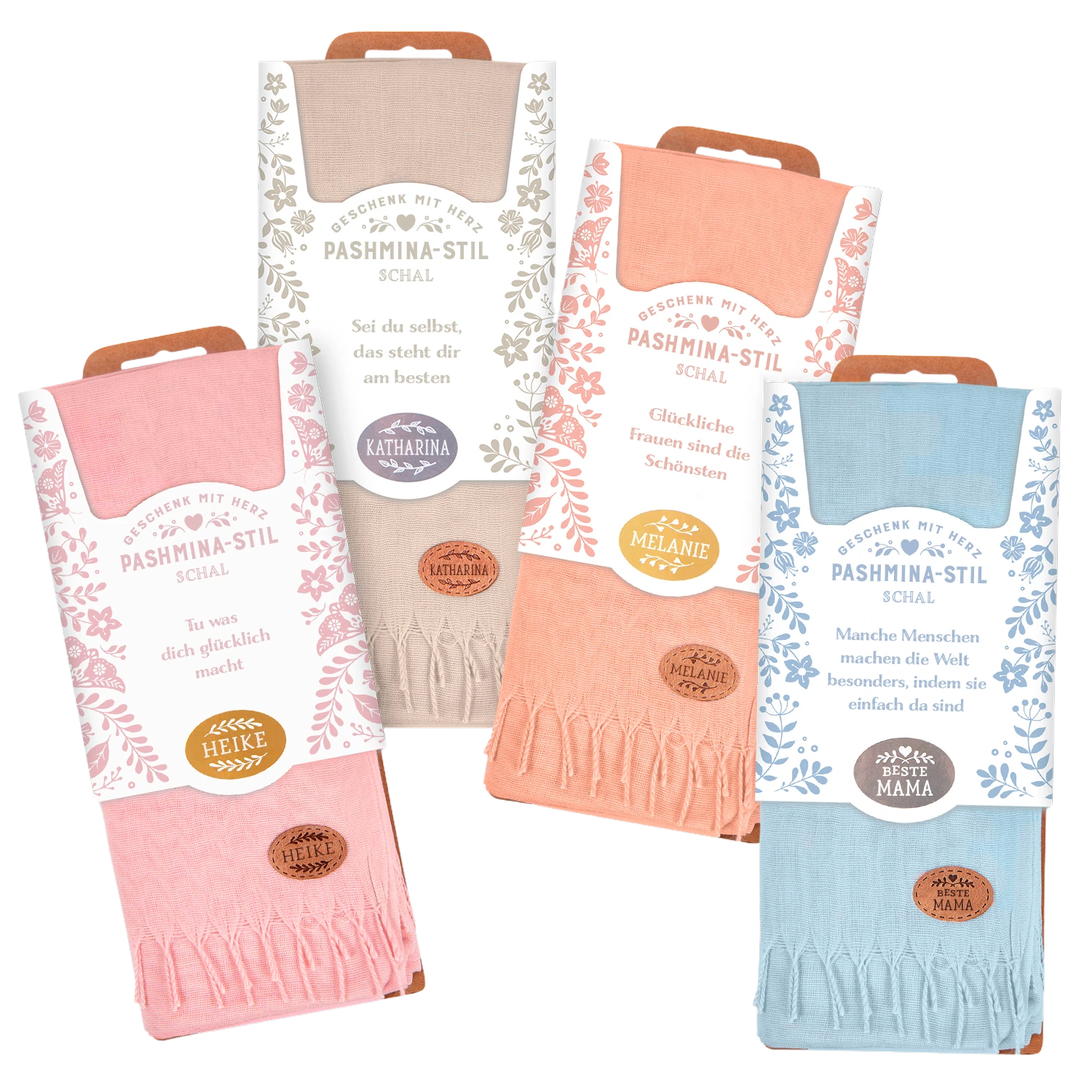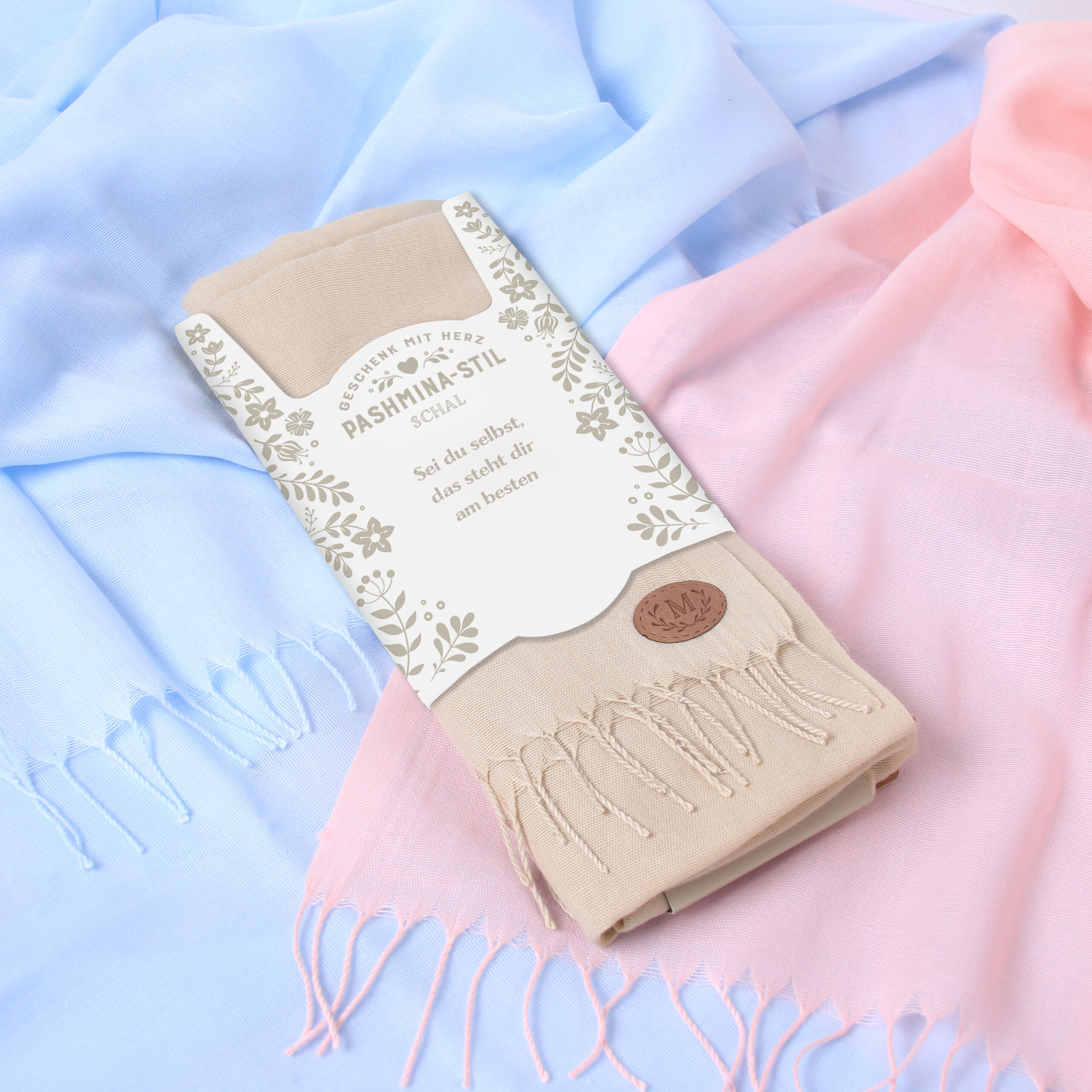 Ein Schal im Pashmina-Stil mit vorgegebenem Namen ist auch eine wundervolle Geschenkidee. Ob zum Geburtstag, zum Jahrestag, als Dankeschön oder einfach als liebevolle Aufmerksamkeit – mit diesem stilvollen Accessoire verschenkst du nicht nur ein modisches Statement, sondern auch eine ganz besondere Botschaft. Die stilvolle Verpackung mit floralem Design macht das Geschenk noch besonderer und sorgt für eine edle Präsentation.