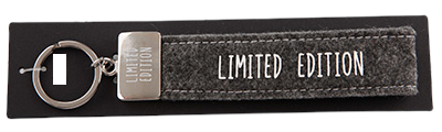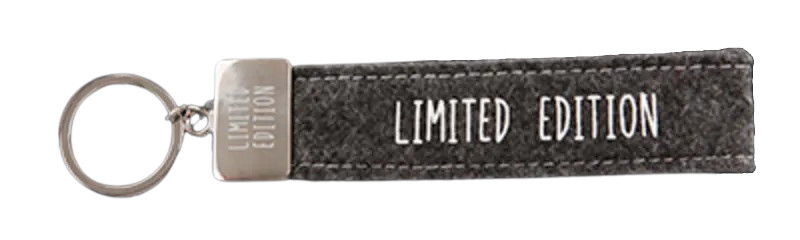 Dieser kultig bedruckte Schlüsselanhänger besteht aus einer Filzschlaufe, mit Sticknaht und einem Metallabschluss. Das Schlüsselband ist mit einem coolen, lustigem oder liebevollen Spruch auf der Vorderseite bedruckt. In diesem Fall ist das Filzband in der Farbe Grau, mit der Aufschrift “Limited Edition”. Auf den Metallabschluss ist ebenfalls nochmal “Limited Edition” gedruckt.