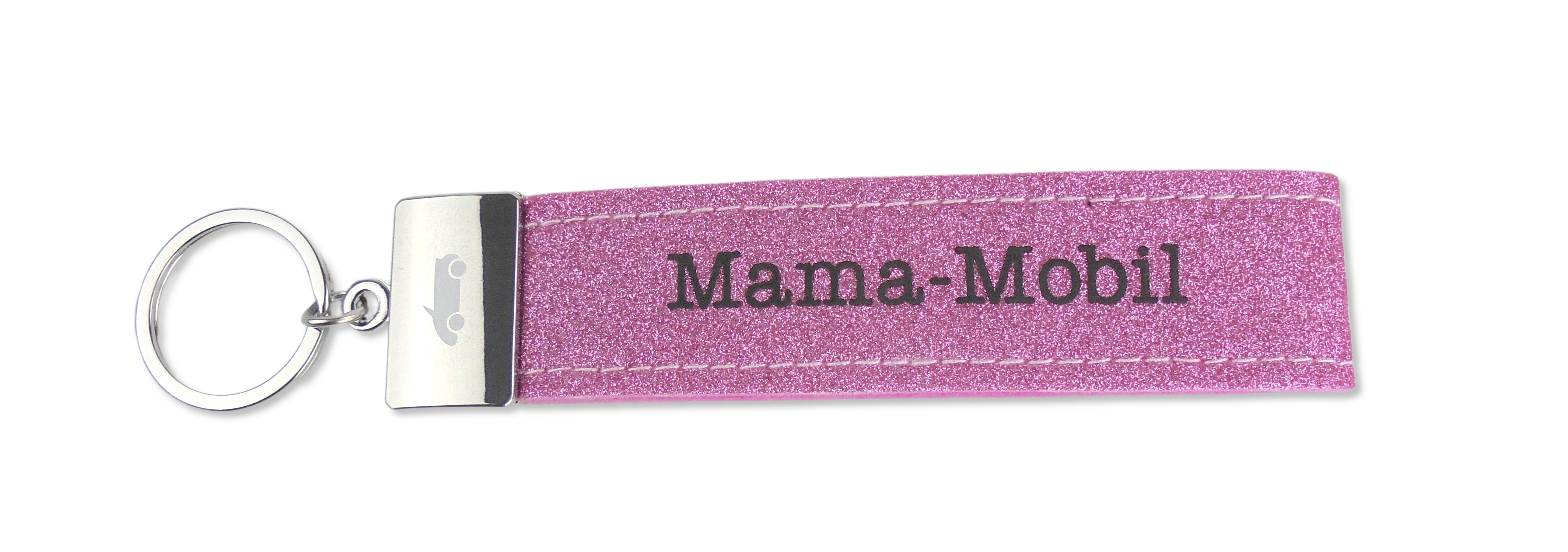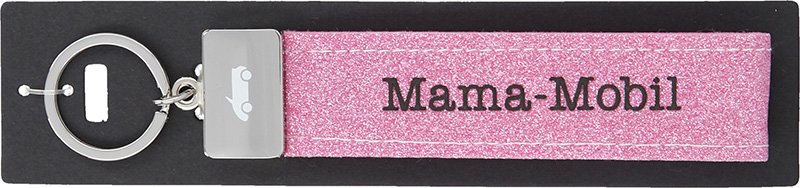 Dieser kultig bedruckte Schlüsselanhänger besteht aus einer Filzschlaufe, mit Sticknaht und einem Metallabschluss. Das Schlüsselband ist mit einem coolen, lustigem oder liebevollen Spruch auf der Vorderseite bedruckt. In diesem Fall ist das glitzernde Filzband in der Farbe Rosa, mit der Aufschrift “Mama-Mobil”. Auf dem Metallabschluss außerdem passend dazu ein Auto gedruckt.