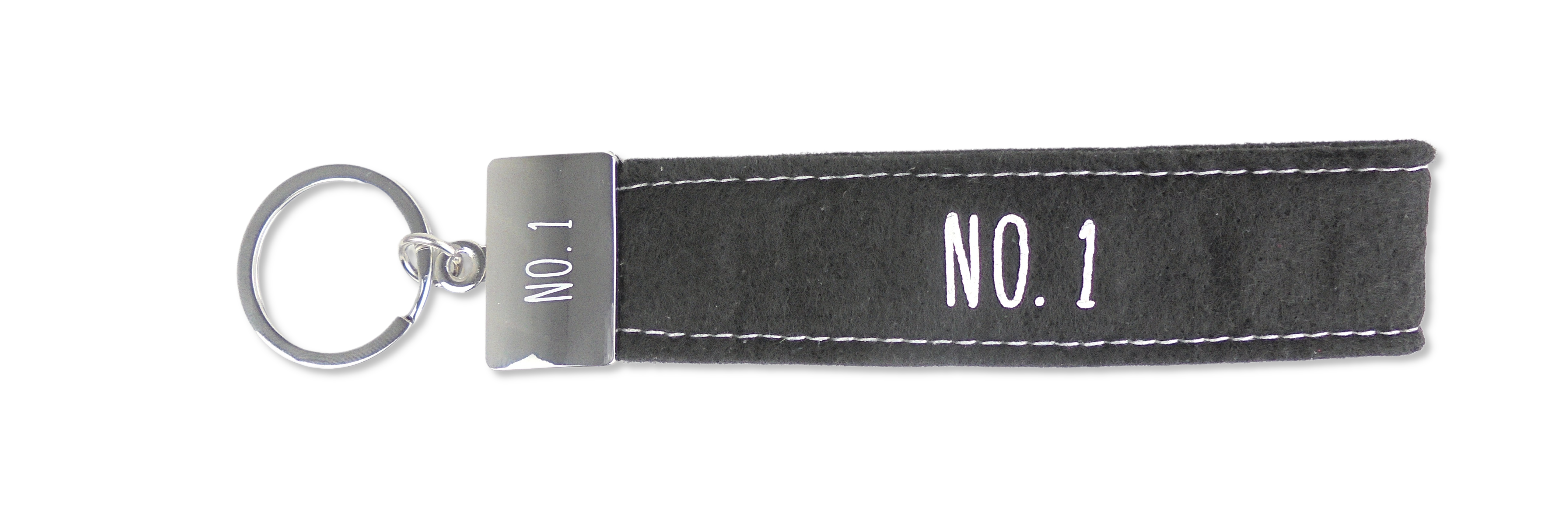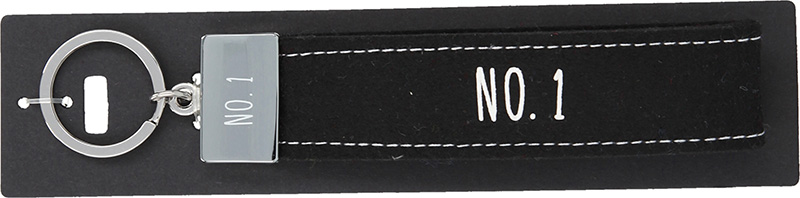 Dieser kultig bedruckte Schlüsselanhänger besteht aus einer Filzschlaufe, mit Sticknaht und einem Metallabschluss. Das Schlüsselband ist mit einem coolen, lustigem oder liebevollen Spruch auf der Vorderseite bedruckt. In diesem Fall ist das Filzband in der Farbe Schwarz, mit der Aufschrift “No. 1”. Auf dem Metallabschluss ist ebenfalls noch einmal “No. 1” gedruckt.
