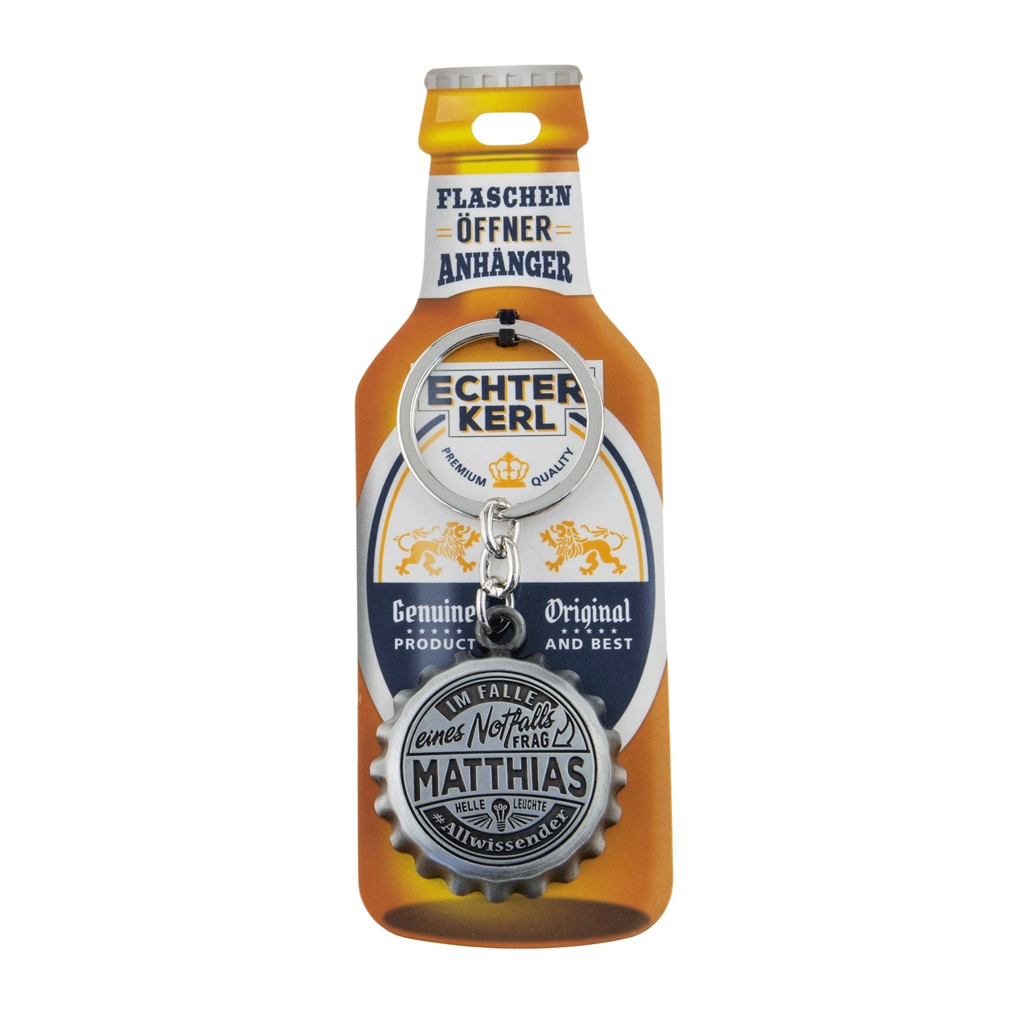 Diesen Spruch kann jetzt jeder echte Kerl stets mit sich führen. Denn nun gibt es ihn nicht nur auf einem Kugelschreiber oder Becher, sondern auch als Flaschenöffner im praktischen Schlüsselanhänger-Format.