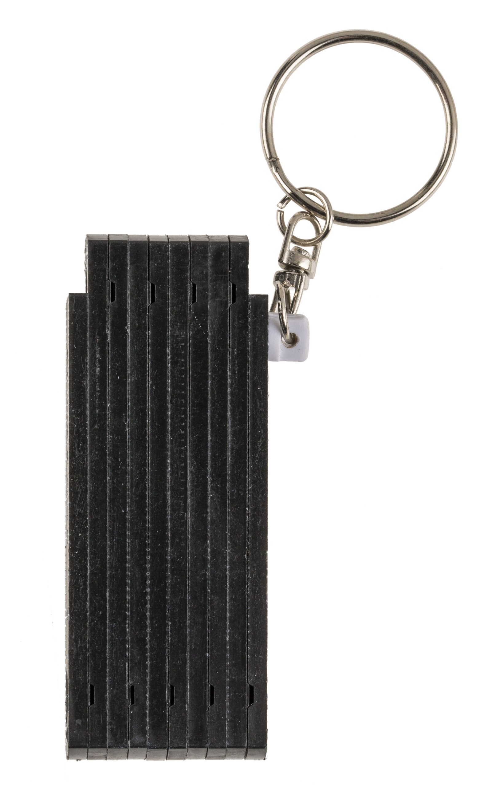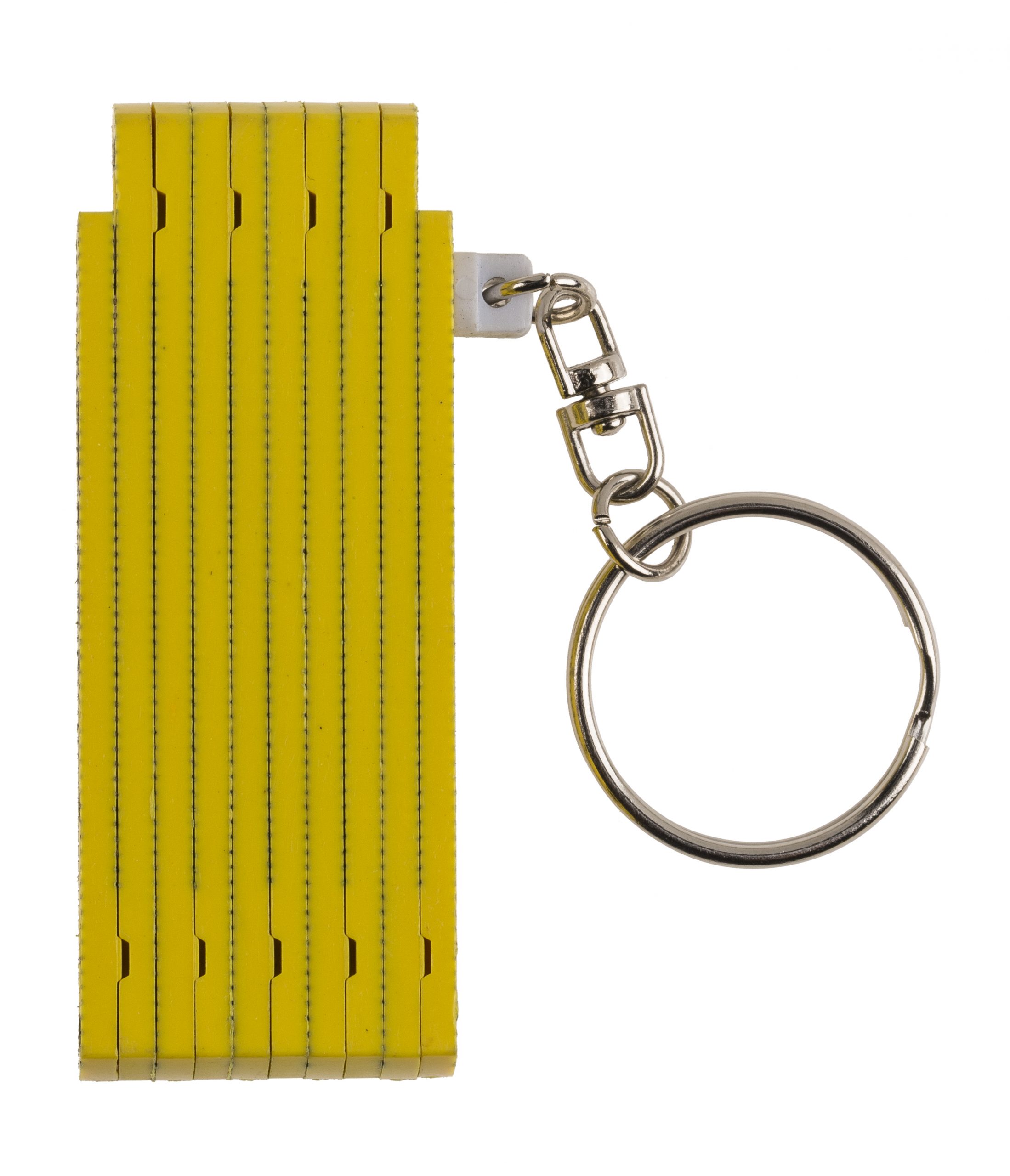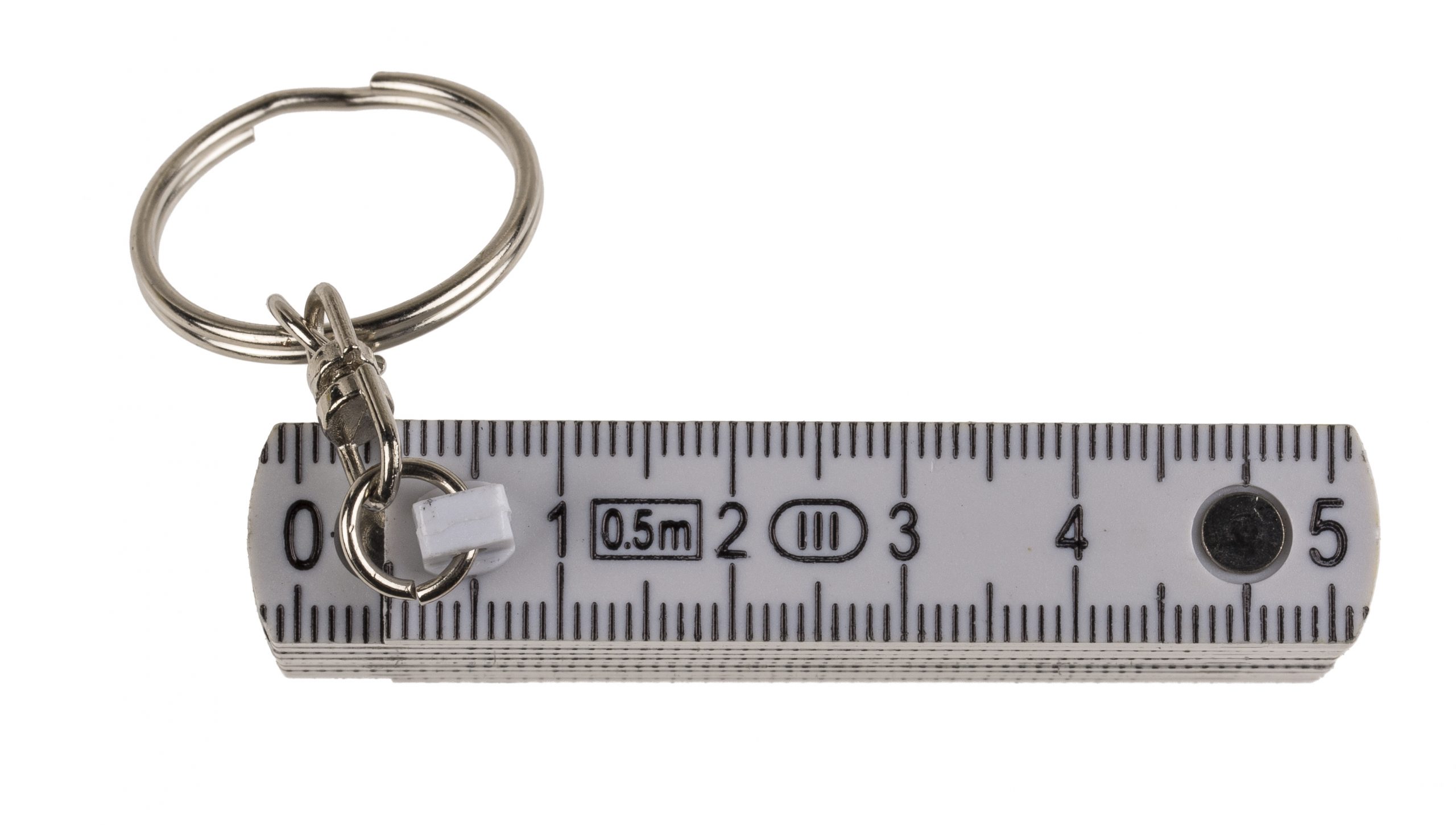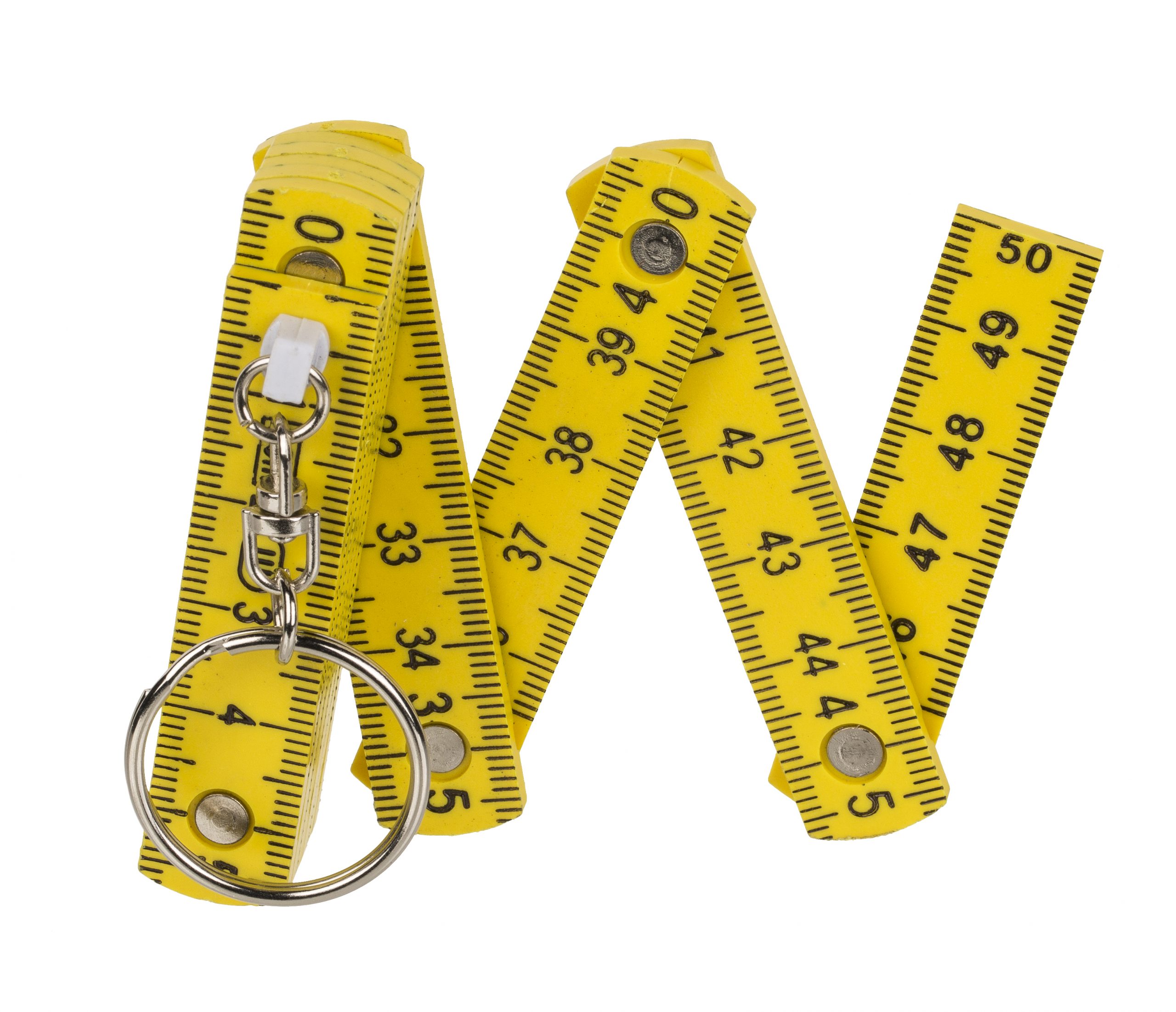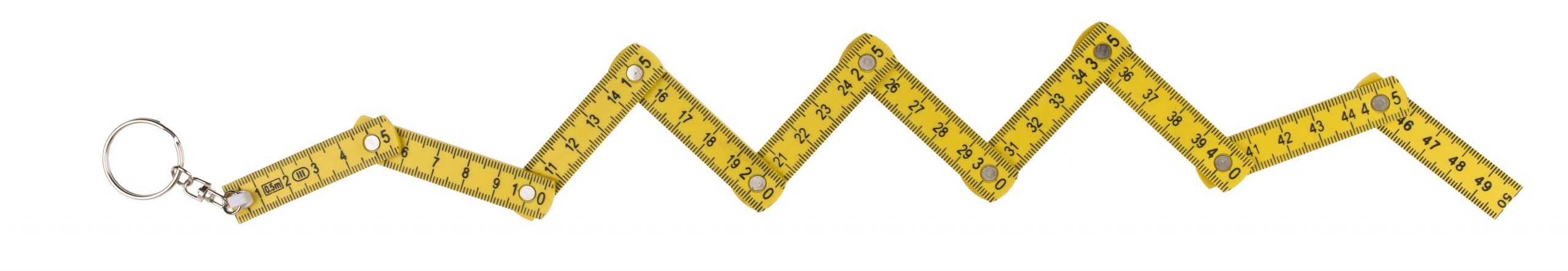 Der Schlüsselanhänger ist ein funktionierender kleiner Zollstock. Die Skala reicht bis zu einer Länge vom 50cm.