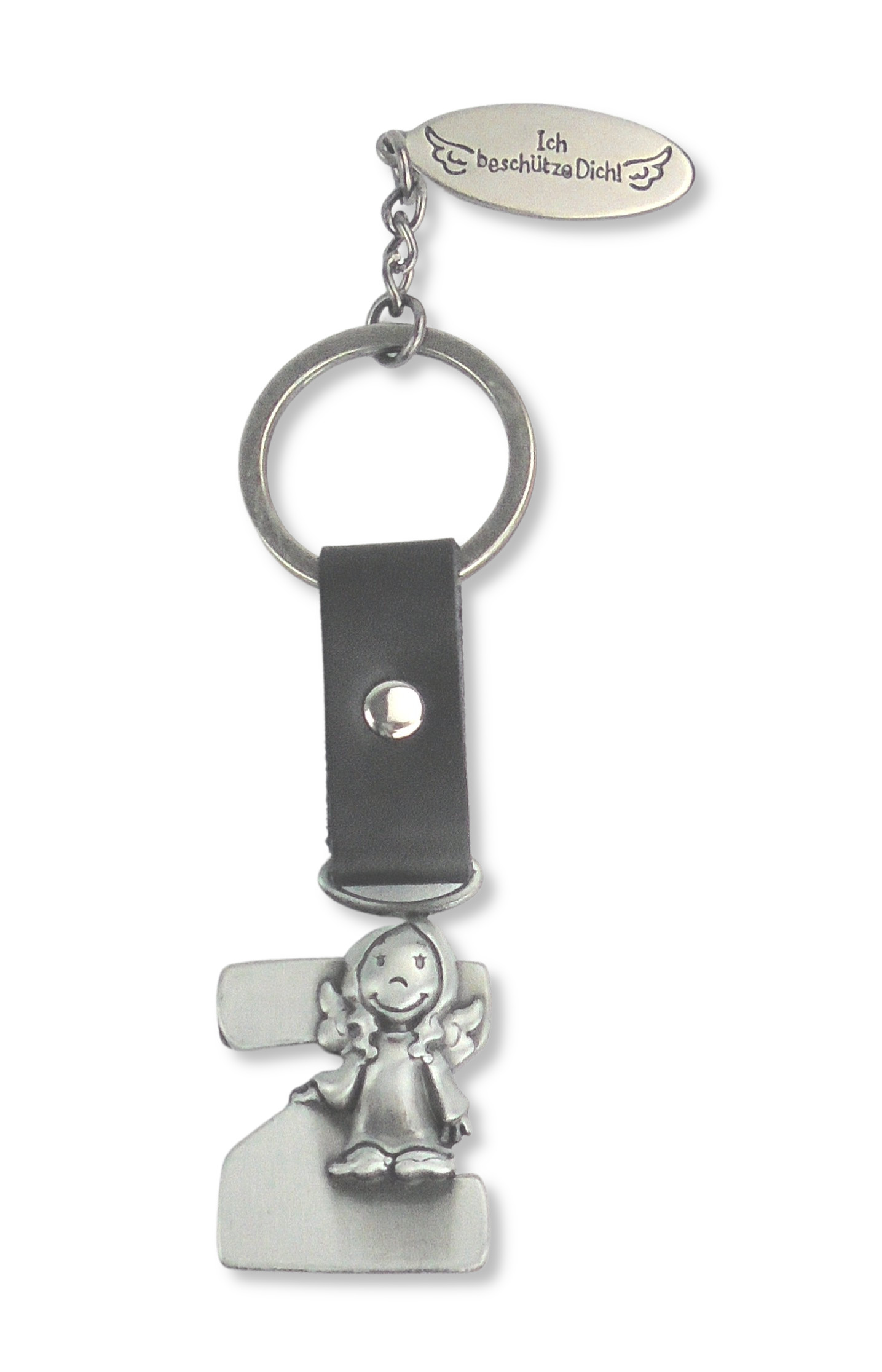 Das Besondere an diesem Schlüsselanhänger ist die Verbindung zwischen dem Schutzengel und dem Schlüsselring. Ein schwarzes Lederband, kunstvoll angebracht, verleiht nicht nur eine zusätzliche visuelle Dimension, sondern sorgt auch für eine angenehme Haptik. Diese harmonische Kombination aus Silber und Schwarz schafft einen stilvollen Kontrast und verleiht dem Anhänger einen Hauch von Raffinesse.