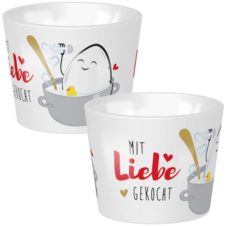 Frühstück ist die wichtigste Mahlzeit des Tages – warum also nicht mit einer Extraportion Liebe starten? Der Sheepworld Eierbecher „Mit Liebe gekocht“ bringt mit seinem charmanten Design und liebevollen Details gute Laune auf den Tisch. Das witzige Motiv zeigt ein zufriedenes Ei, das entspannt in einem Kochtopf sitzt, sich selbst würzt und dabei von herzförmigem Dampf umgeben ist. Sogar eine kleine Bade-Ente leistet ihm Gesellschaft – ein niedlicher Hingucker, der für ein Schmunzeln sorgt!