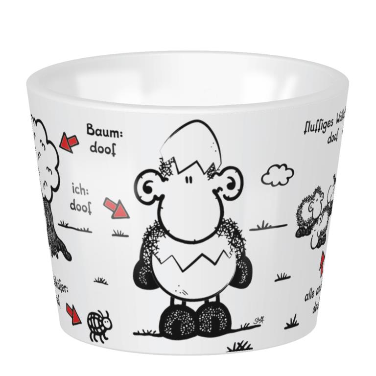 Ein Frühstück ohne Ei? Undenkbar! Der Sheepworld Eierbecher „Ohne Ei“ bringt mit seinem humorvollen Design und dem witzigen Spruch „Ohne Ei ist alles doof!“ sofort gute Laune auf den Tisch. Das niedliche Sheepworld-Schaf schaut unglücklich drein, während um es herum verschiedene Objekte mit dem Zusatz „doof“ versehen sind – von der Sonne bis zum Baum. Denn ohne ein leckeres Frühstücksei fehlt einfach etwas!