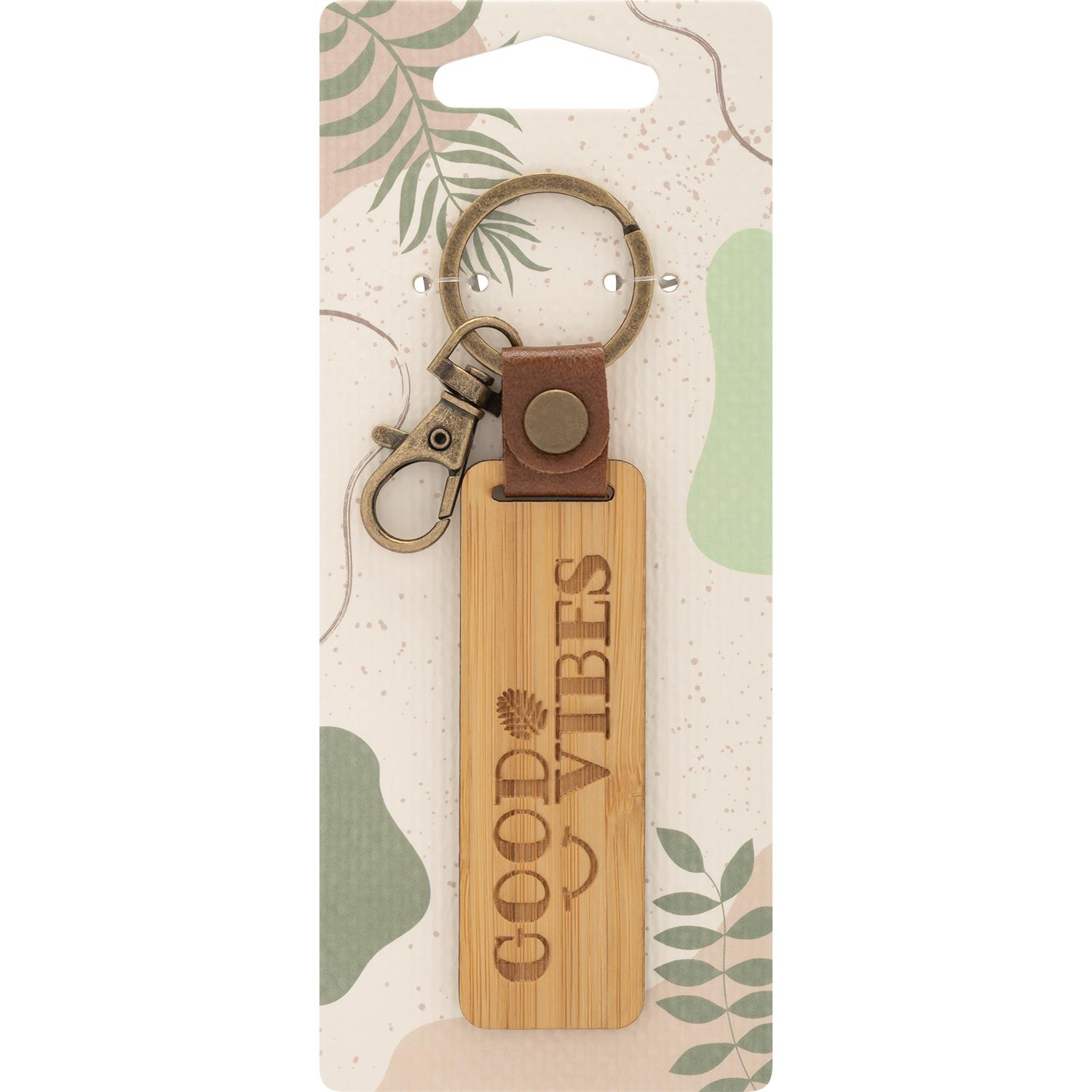 Hergestellt aus hochwertigem Bambusholz, bietet dieser Schlüsselanhänger nicht nur eine robuste Qualität, sondern auch warme Farbnuancen, die seine natürliche Schönheit betonen. Jeder Anhänger präsentiert eine einzigartige Maserung, die dem Holz Charakter verleiht und gleichzeitig einen Beitrag zum Umweltschutz leistet, da nachhaltige Materialien verwendet werden.