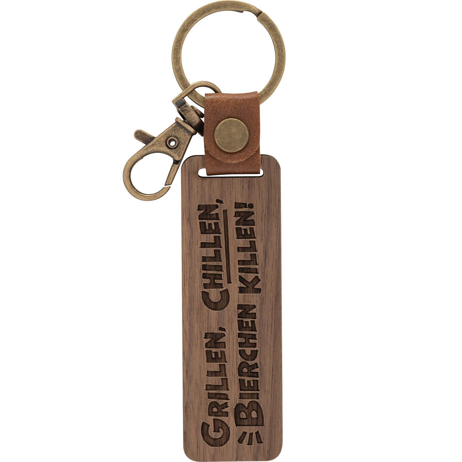 Sheepworld Holz-Schlüsselanhänger “Grillen, chillen, Bierchen killen”