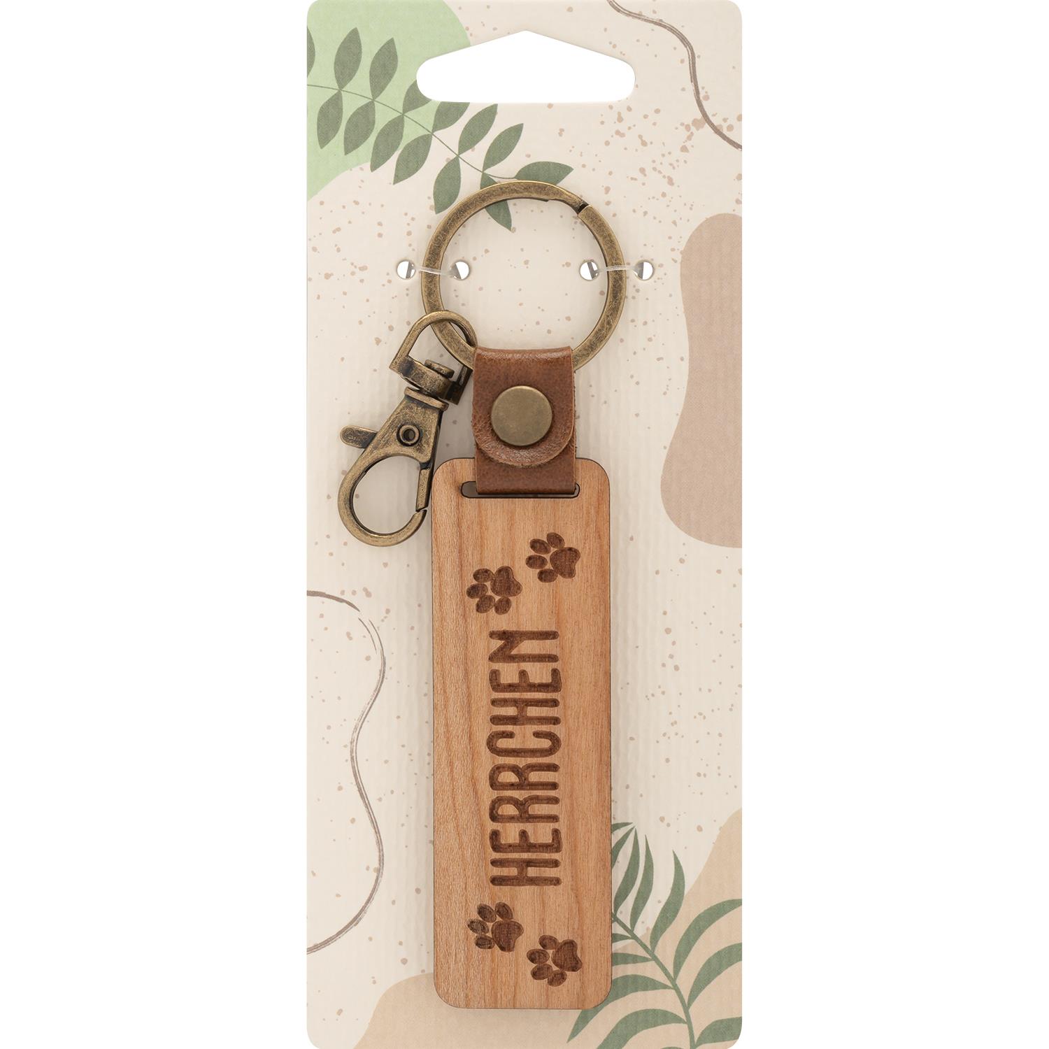 Das Design des Schlüsselanhängers ist schlicht und zeitlos, was ihn zu einem vielseitigen Begleiter für jeden Anlass macht. Ob am Schlüsselbund, an der Tasche oder als Geschenk in der formschönen Headercard – der Holz-Schlüsselanhänger “Herrchen” zieht alle Blicke auf sich und unterstreicht den individuellen Stil seines Besitzers.