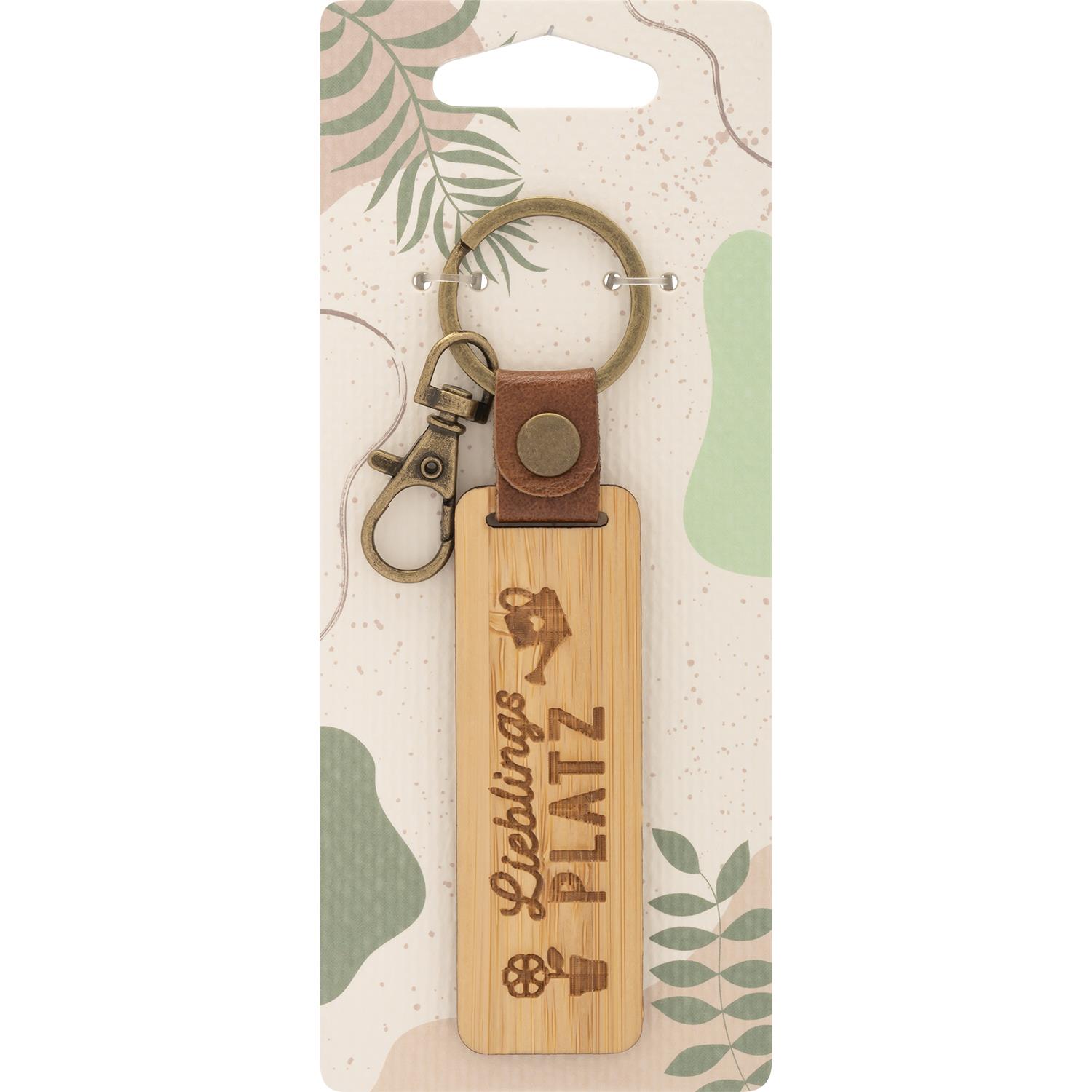 Das Bambusholz, bekannt für seine robuste Qualität und warmen Farbnuancen, verleiht jedem Schlüsselanhänger eine individuelle Maserung und somit einen einzigartigen Charakter. Jeder Anhänger wird zu einem Unikat, das die Verbundenheit mit der Natur und dem nachhaltigen Lebensstil unterstreicht. Die Verwendung von nachhaltigem Holz in der Herstellung trägt nicht nur zur Einzigartigkeit jedes Anhängers bei, sondern leistet auch einen positiven Beitrag zum Umweltschutz.
