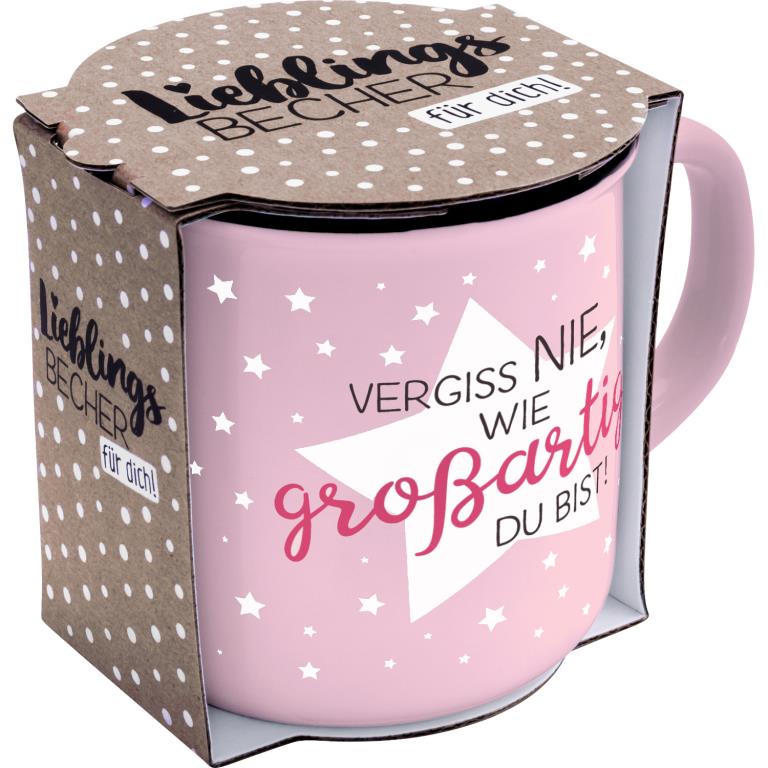 Dank seiner dekorativen Gestaltung in Kombination mit dem passenden Text “Vergiss nie, wie großartig du bist!” eignet sich der Trinkbecher wunderbar als kleines Mitbringsel für einen besonderen Menschen.