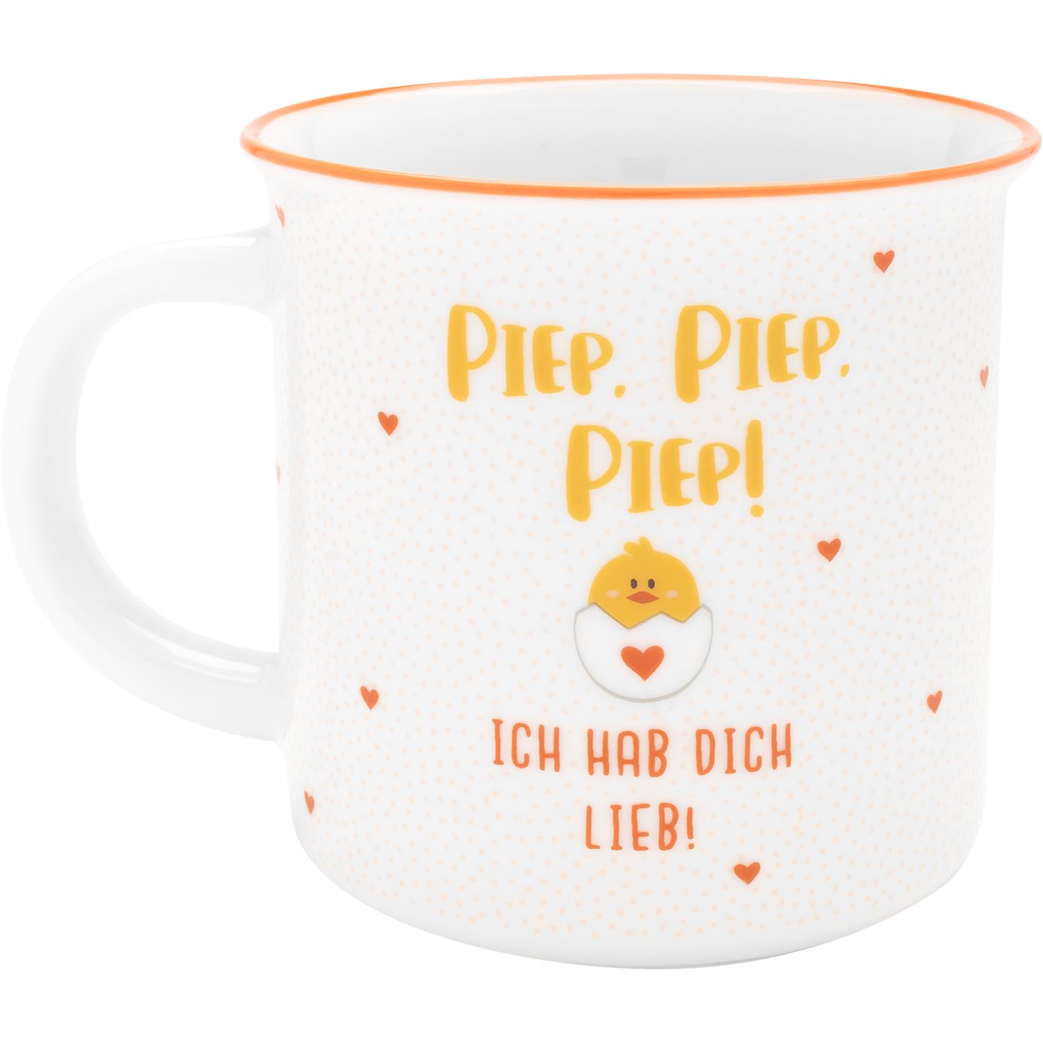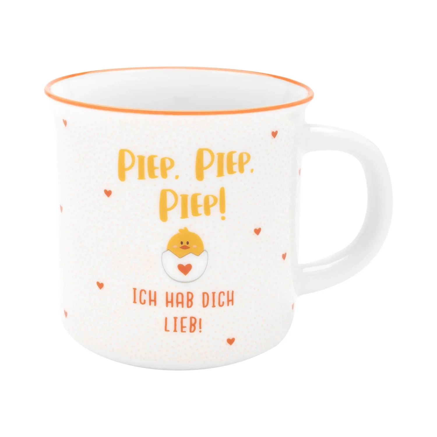 Die Sheepworld Ostertasse “Hab dich lieb” mit dem Spruch “Piep, Piep, Piep! Ich hab dich Lieb” ist eine einzigartige Kaffeetasse in angesagter Emailleoptik und aus robustem New Bone China Porzellan gefertigt, was sie besonders langlebig macht.