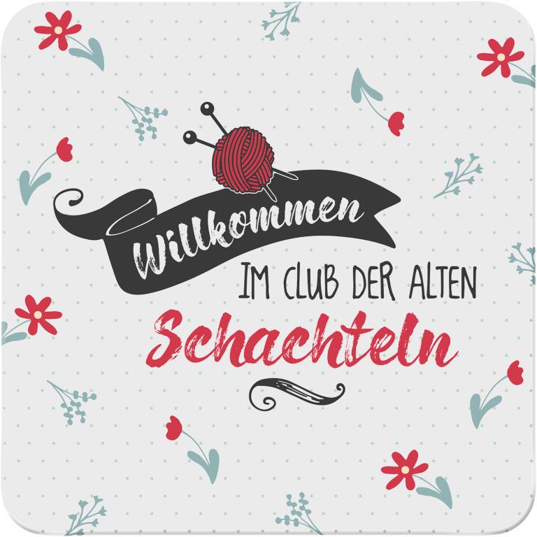 „Willkommen im Club der alten Schachteln“ ist ein toller Untersetzer der, in seiner Farbgestaltung und dem Spruch, eine junge Frau willkommen heißt. Nämlich im Club der Älteren – der Schachteln.