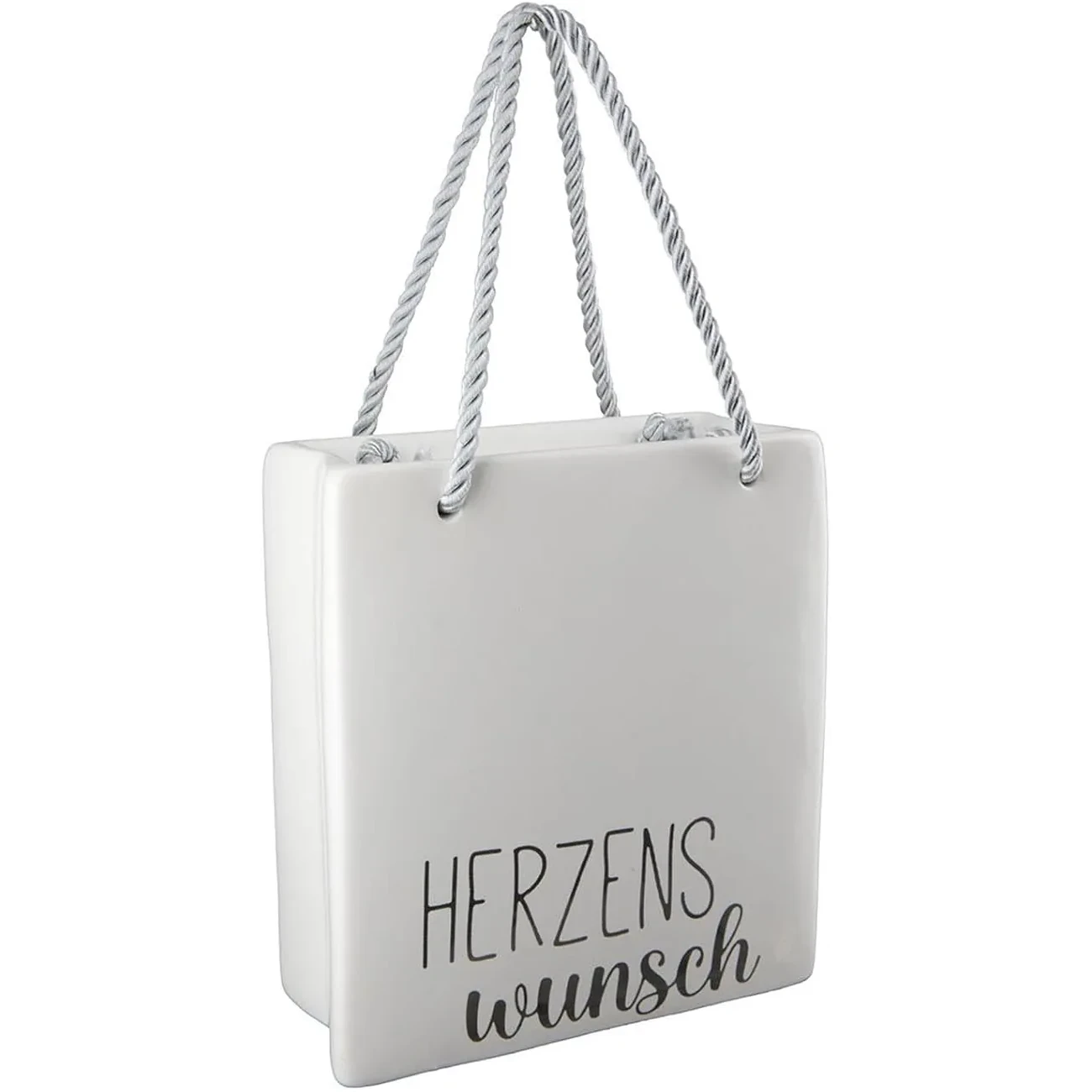 Gefertigt aus feinem, weißem Porzellan und in Form einer eleganten Geschenktüte gestaltet, überzeugt diese Spardose auf den ersten Blick. Der silberne Schriftzug „Herzenswunsch“ schimmert dezent und edel – genauso wie die edlen Kordelgriffe in Silber, die der Spardose das gewisse Etwas verleihen. Sie passt sich harmonisch in jedes Zuhause ein und wird schnell zum Lieblingsstück auf Regal, Nachttisch oder Schreibtisch.