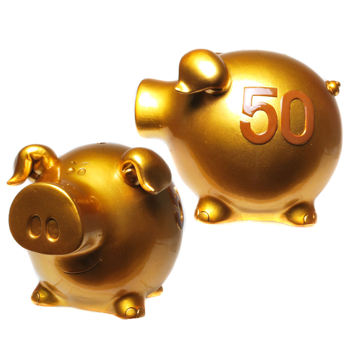 Daher ist dieses tolle, goldene Sparschwein aus Keramik, mit einer aufgedruckten 50, das ideale Geschenk für das goldene Jubelpaar oder den/die Jubilar/in.