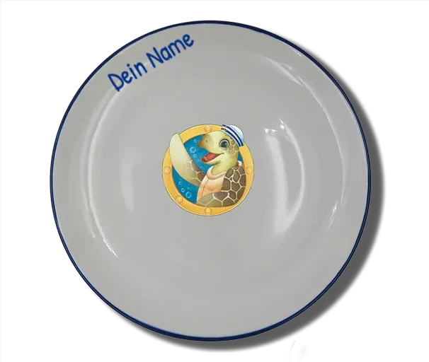 Mit viel Liebe zum Detail entsteht dieser Teller in einer deutschen Manufaktur. Ein echtes Unikat, das für Freude bei Groß und Klein sorgt. Das niedliche “Bullauge & Schildkröte”-Motiv in Kombination mit deinem persönlichen Wunschnamen macht den Teller zu einem ganz besonderen Begleiter für jede Mahlzeit und jeden Anlass.