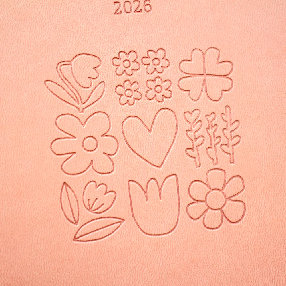 Das Cover besticht durch seine sanfte, apricot Farbgebung und die fein geprägten, stilisierten Blumen, die dem Planer eine dezente, aber besondere Note verleihen. Die zarte Prägung wirkt wie ein florales Ornament und macht aus dem Planer ein edles Accessoire. Ideal für alle, die Wert auf schönes Design und durchdachte Details legen.