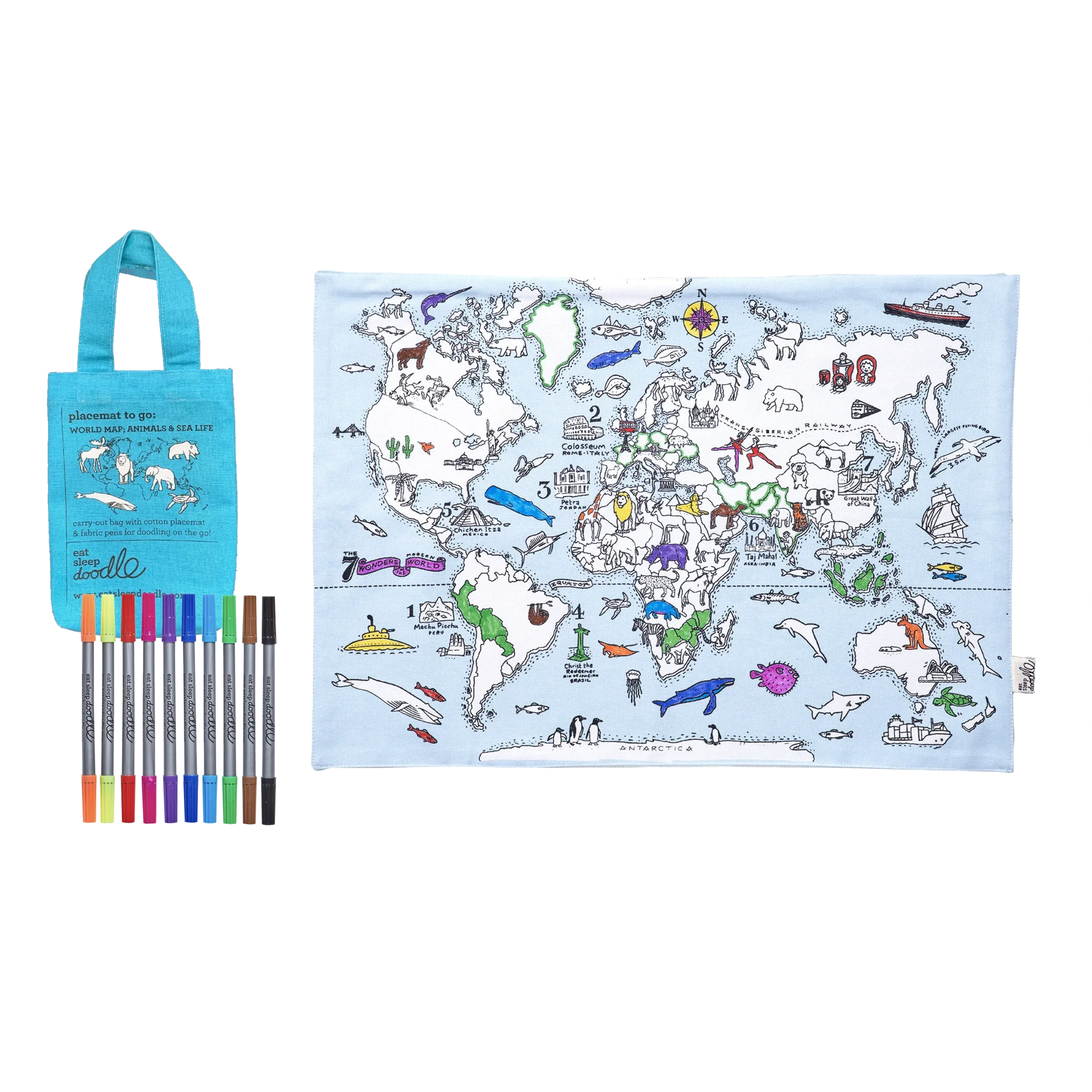 Das beliebteste Design Weltkarte gibt es jetzt als praktisches und tragbares Tischset zum Ausmalen! Dieses kreative und lehrreiche Produkt begeistert kleine Entdecker und lässt sie auf spielerische Weise die faszinierende Tierwelt unseres Planeten kennenlernen.