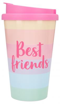 Dieser stylishe Trinkbecher mit dem Spruch Best Friends für unterwegs sorgt für beste Laune. Ob heißer Tee, kühle Limo oder Wasser: Dank der verschließbaren Trinköffnung geht nichts daneben.
